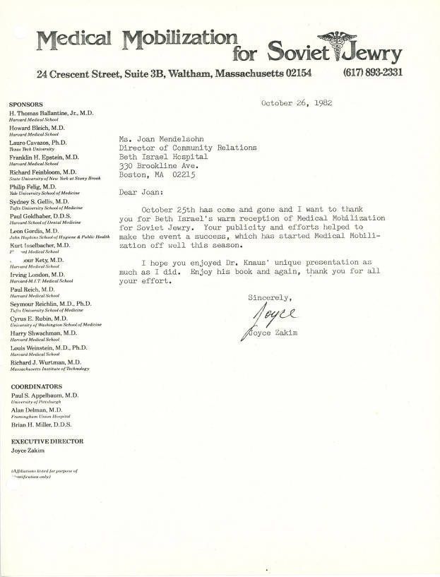 Union of Councils for Soviet Jews, Medical Mobilization for Soviet Jewry, Knaus, William A., Beth Israel Hospital (Boston, Mass.)