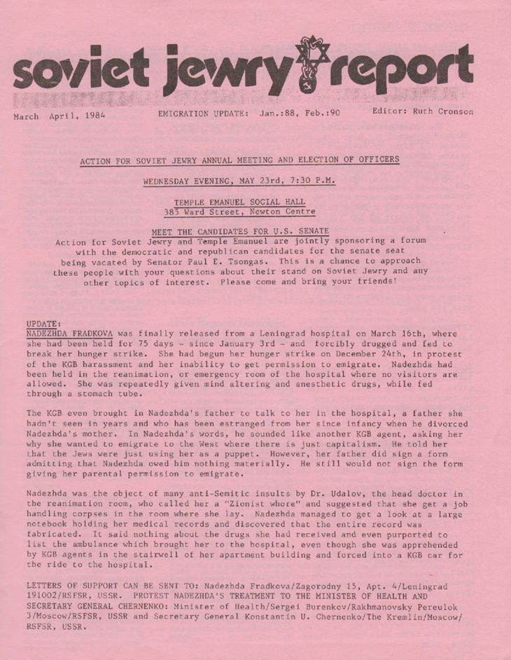 Newsletter published by Action for Soviet Jewry.