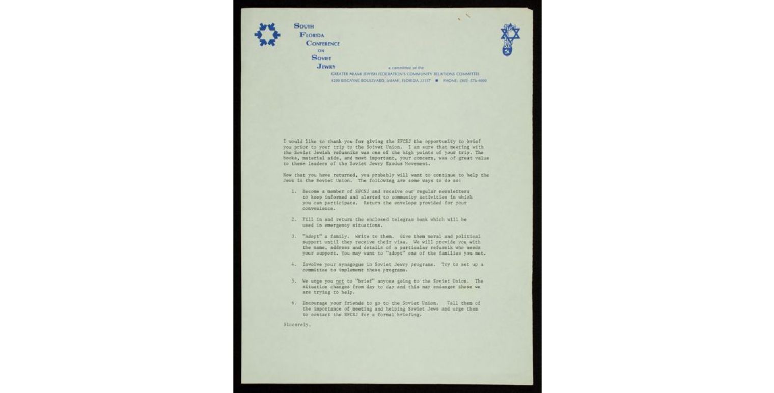 Tourist briefing papers given to Miami tourists prior to their visiting Soviet Jews (box 2, folder 5)Entry/Object ID