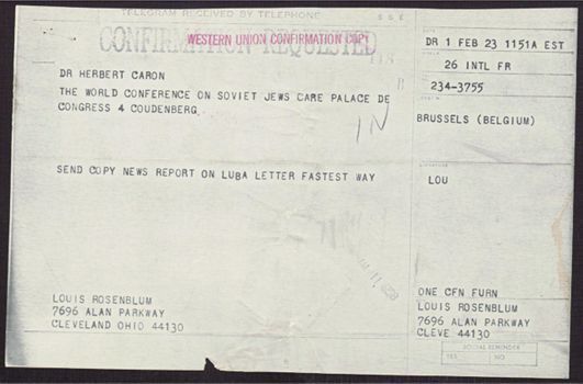 Cleveland Council on Soviet Anti-Semitism, Union of Councils for Soviet Jews, Rosenblum, Louis, B'nai B'rith Hillel Foundations, National Conference on Soviet Jewry (U.S.), Groner, Oscar, Bershadskya, Luba