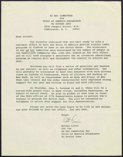Cleveland Council on Soviet Anti-Semitism, Union of Councils for Soviet Jews, Rosenblum, Louis, Voice of America (Organization)