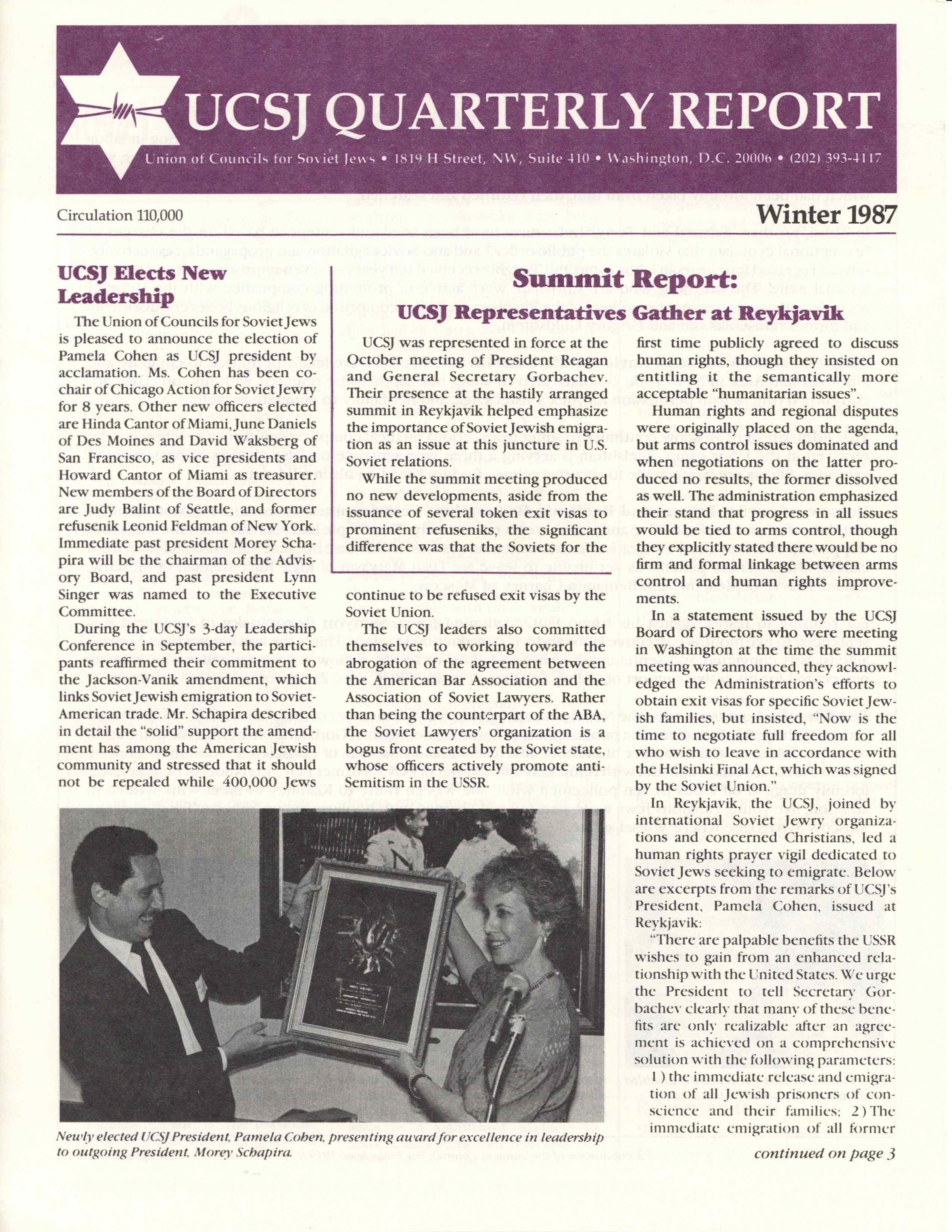 Quarterly newsletter published by the Union of Councils for Soviet Jews