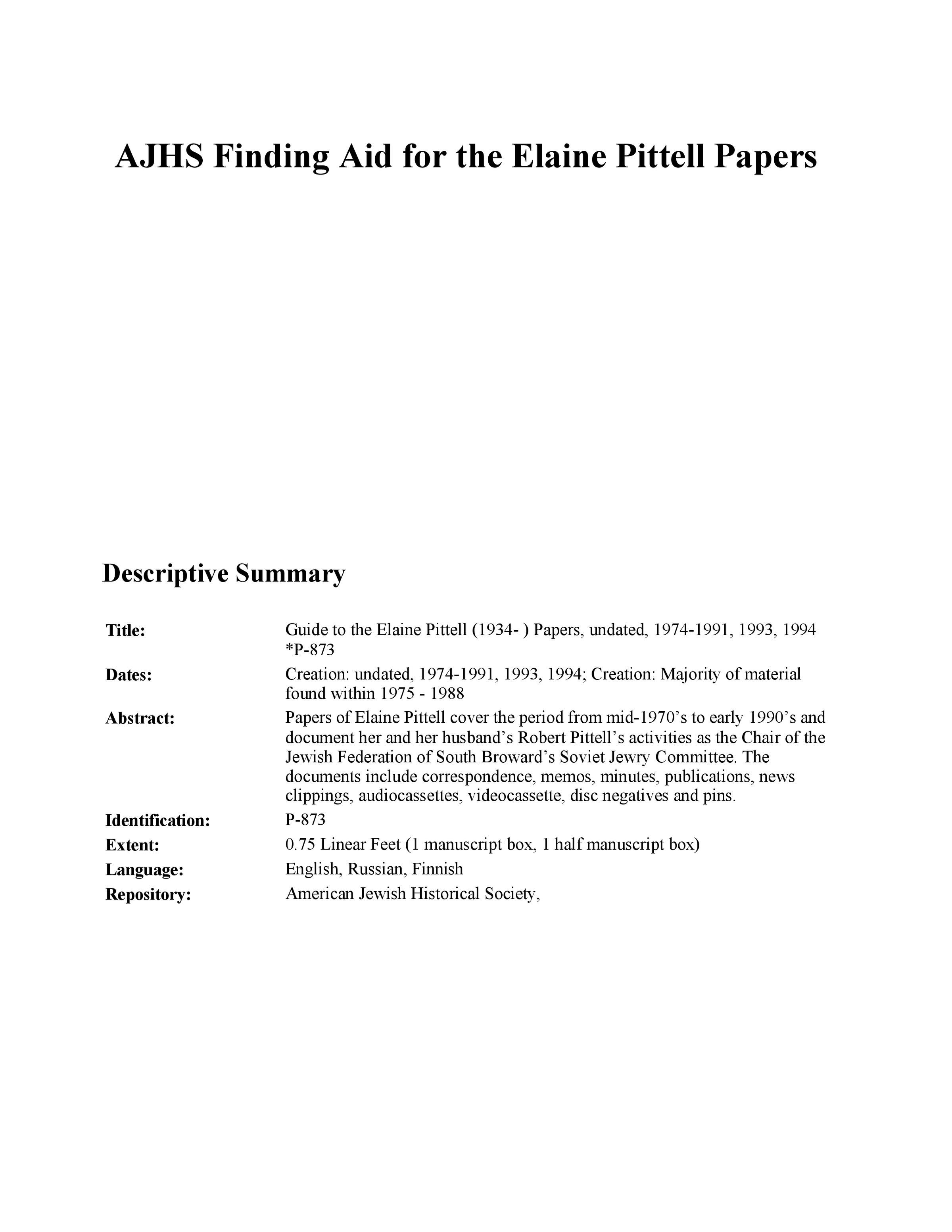 Union of Councils for Soviet Jews, Shcharansky, Anatoly, National Conference on Soviet Jewry (U.S.), Pittell, Robert, Nudel, Ida, Meir, Golda, 1898-1978, Begin, Menachem, 1913-1992, Wiesel, Elie, 1928-2016, Jewish Federation of South Broward, United Jewish Appeal, Jewish Federation of South Broward’s Soviet Jewry Committee