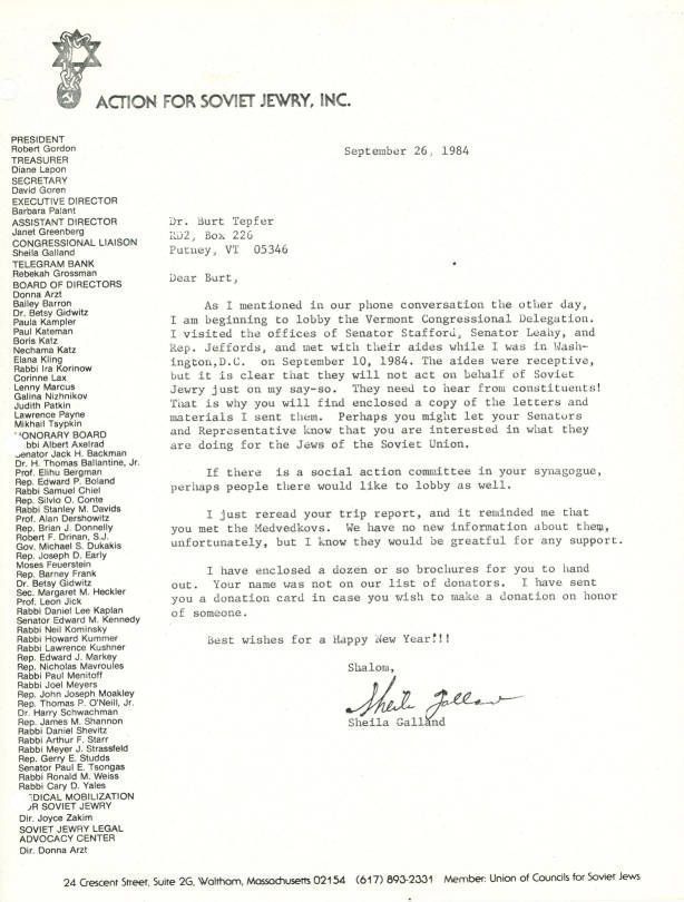 Jews -- Massachusetts -- Boston, Jews, Soviet, Refuseniks, Emigration & immigration, Political action, Jews -- Vermont