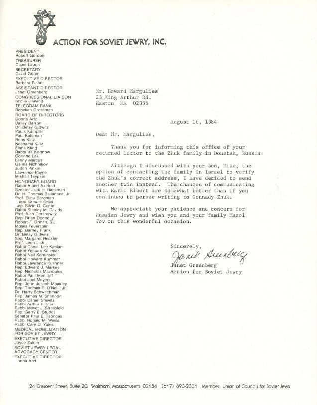 Correspondence - Janet Greenberg to Howard MarguliesEntry/Object ID