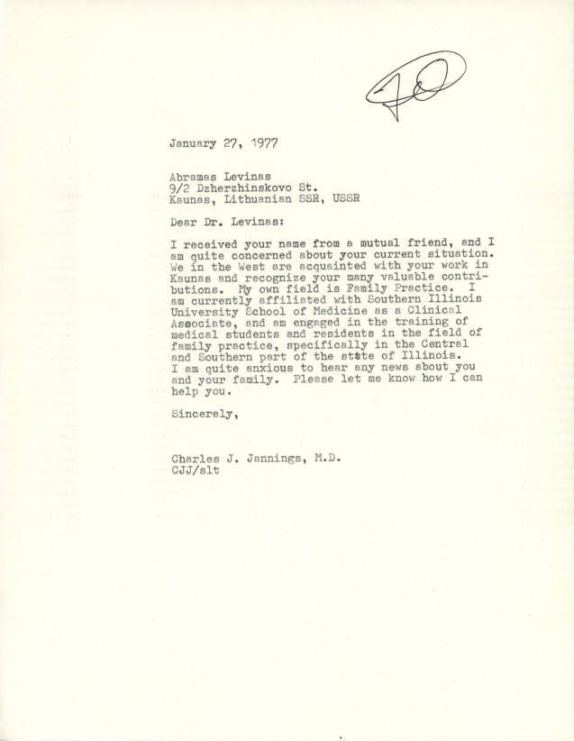 Correspondence - Charles J. Jannings to Abramas Levinas