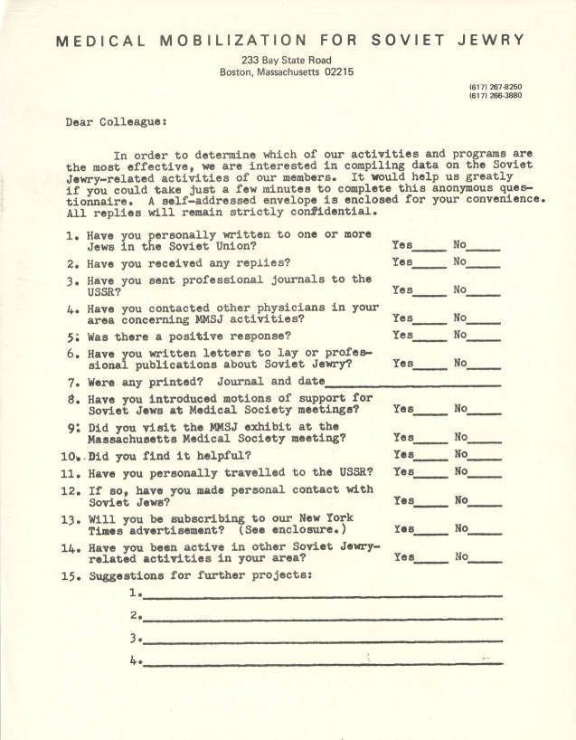 Survey on the Soviet Jewry related activities of members.Collection