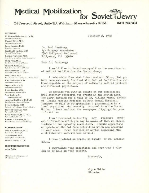 Union of Councils for Soviet Jews, Medical Mobilization for Soviet Jewry, Sandberg, Joel (1943- ), Knaus, William A.