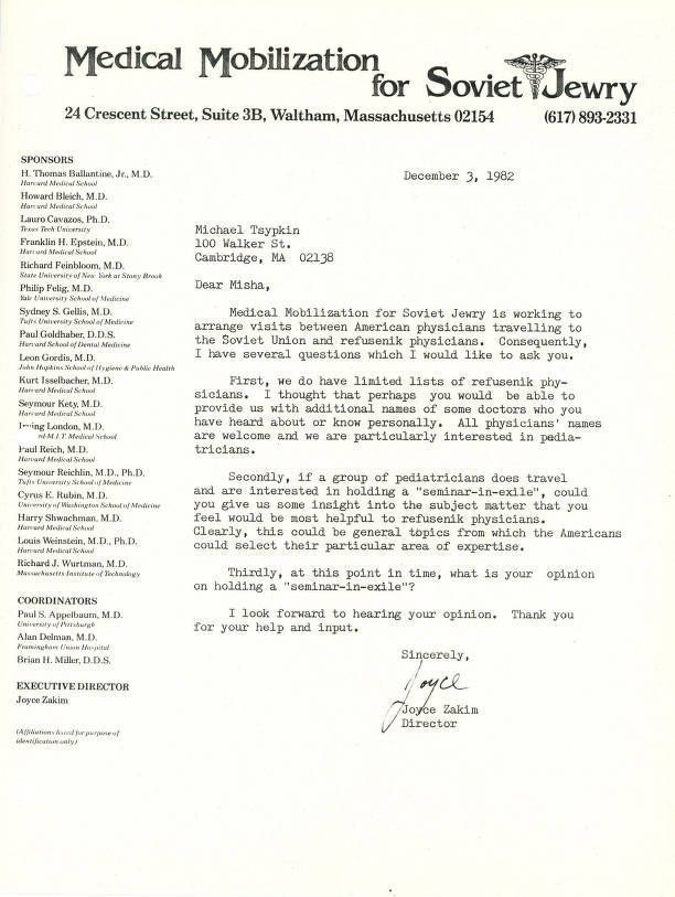 Jews -- Massachusetts -- Boston, Refuseniks, Emigration & immigration, Jews, Soviet, Physicians, Human rights, Travel, Pediatricians