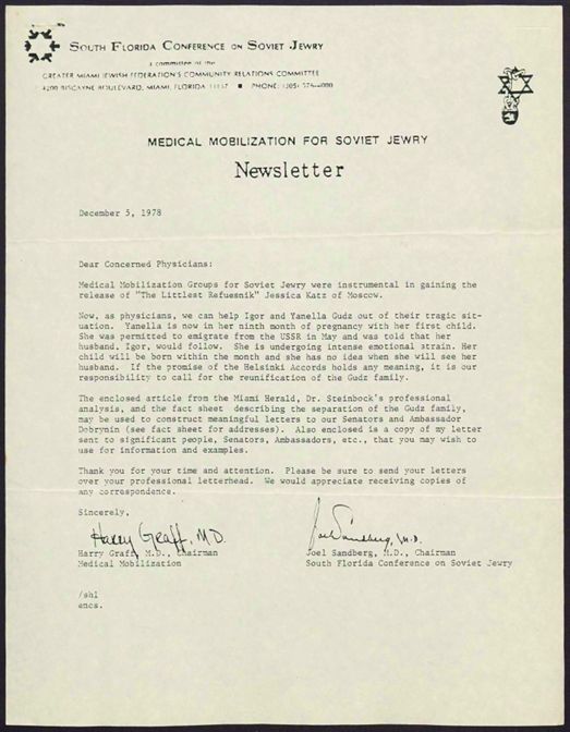 Cleveland Council on Soviet Anti-Semitism, Union of Councils for Soviet Jews, Rosenblum, Louis, South Florida Conference on Soviet Jewry, Medical Mobilization for Soviet Jewry, Gudz, Igor, Shcharansky, Anatoly, Sandberg, Joel (1943- ), Poltinnikova-Shifrin, Ėleonora, Poltinnikov, Viktoria, Poltinnikov, Isaac