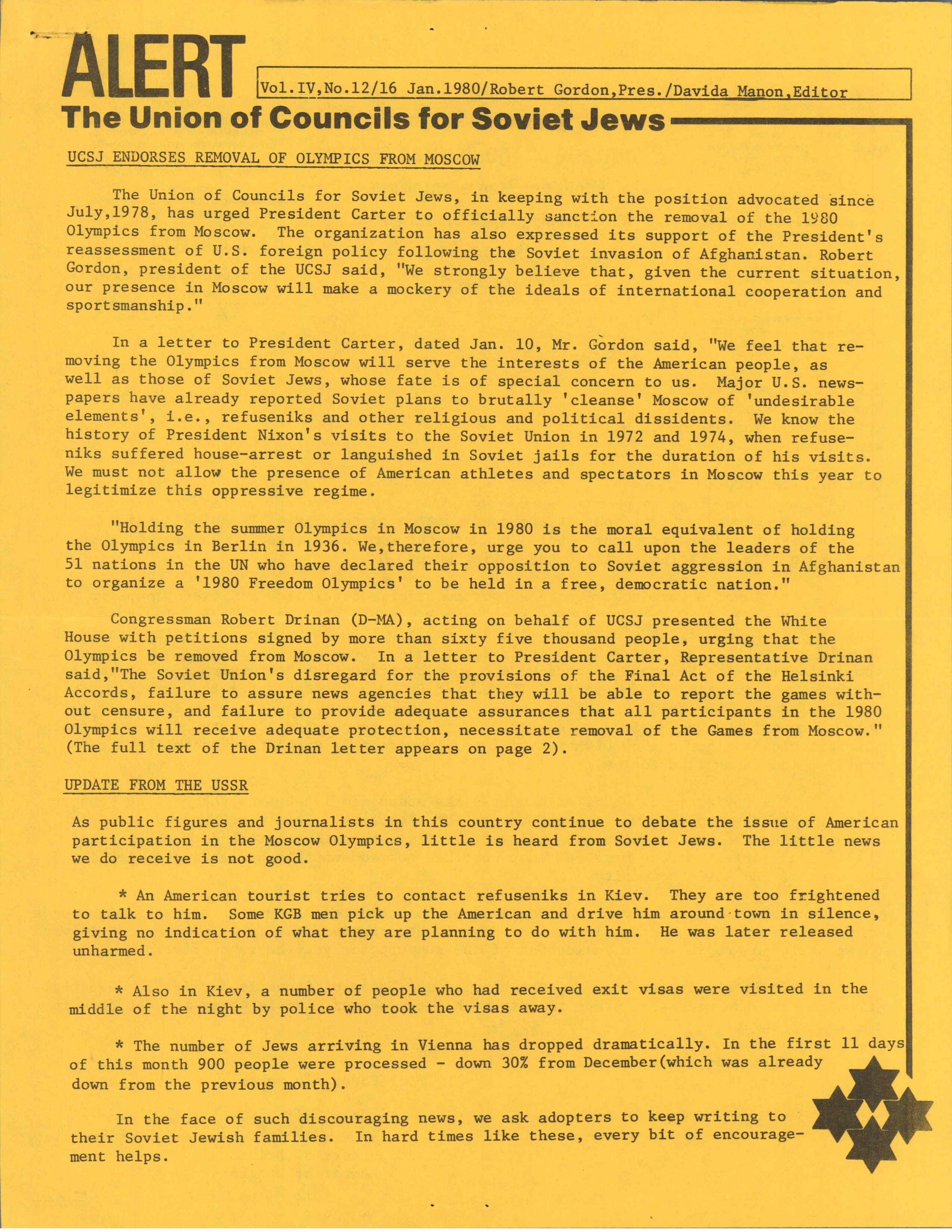 Jews, Soviet, Olympic Games (22nd : 1980 : Moscow, Russia), Drinan, Robert F.Location