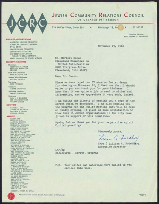 Rosenblum, Louis, National Conference on Soviet Jewry (U.S.), Conference on the Status of American Jews, Cahill, Lawrence P., Horowitz, Philip, Jackson, Leo A., Litt, Daniel, Pike, James A. (James Albert), 1913-1969, Whittemore, B. Bruce, Beth Israel Temple (Cleveland, Ohio), Brith Emeth Congregation (Cleveland, Ohio)