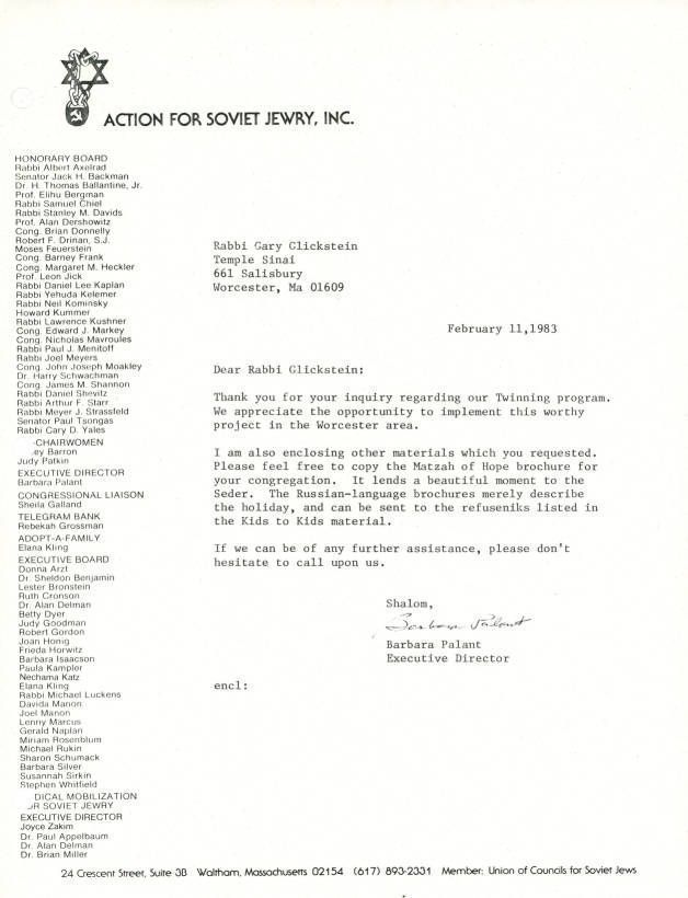 Correspondence - Barbara Palant to Rabbi Gary GlicksteinEntry/Object ID