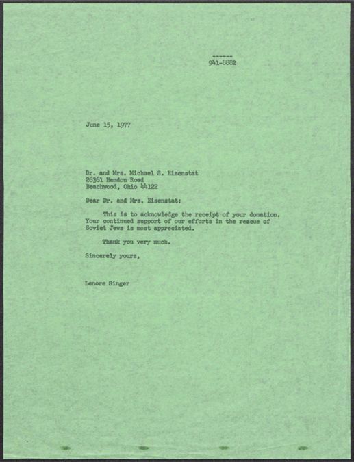 Cleveland Council on Soviet Anti-Semitism, Union of Councils for Soviet Jews, Rosenblum, Louis, Jewish Community Federation (Cleveland, Ohio), Washington Committee for Soviet Jewry, United States. Department of State. Bureau of Public Affairs, Akron Jewish Center, Singer, Lenore, Beall, J. Glenn, Jr. (John Glenn), 1927-2006, Baker, Edward I.