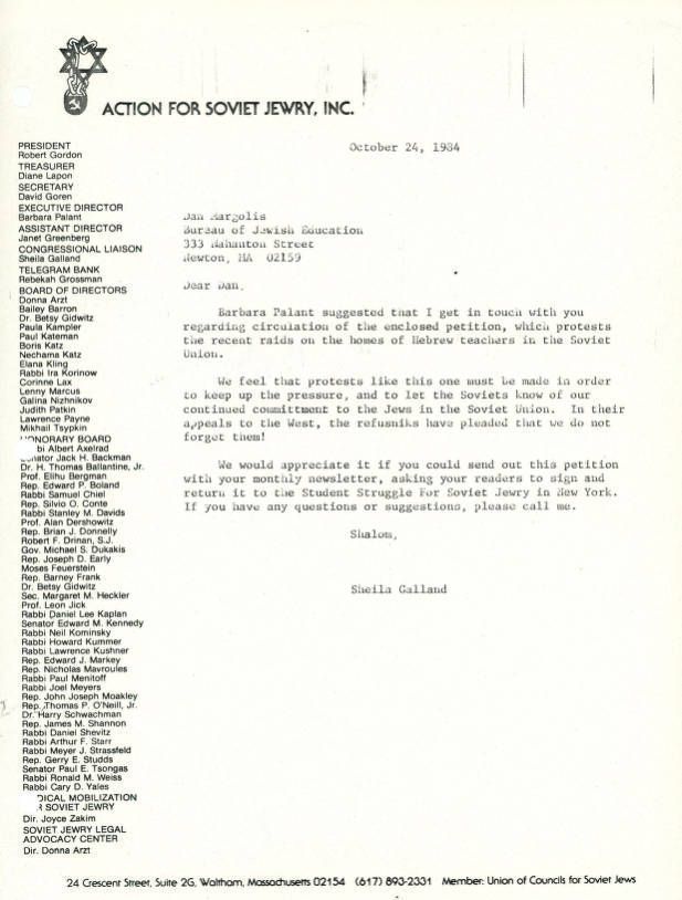 Jews -- Massachusetts -- Boston, Jews, Soviet, Emigration & immigration, Refuseniks, Petitions, Petitioning