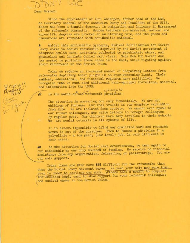 Correspondence - Medical Mobilization for Soviet Jewry to members