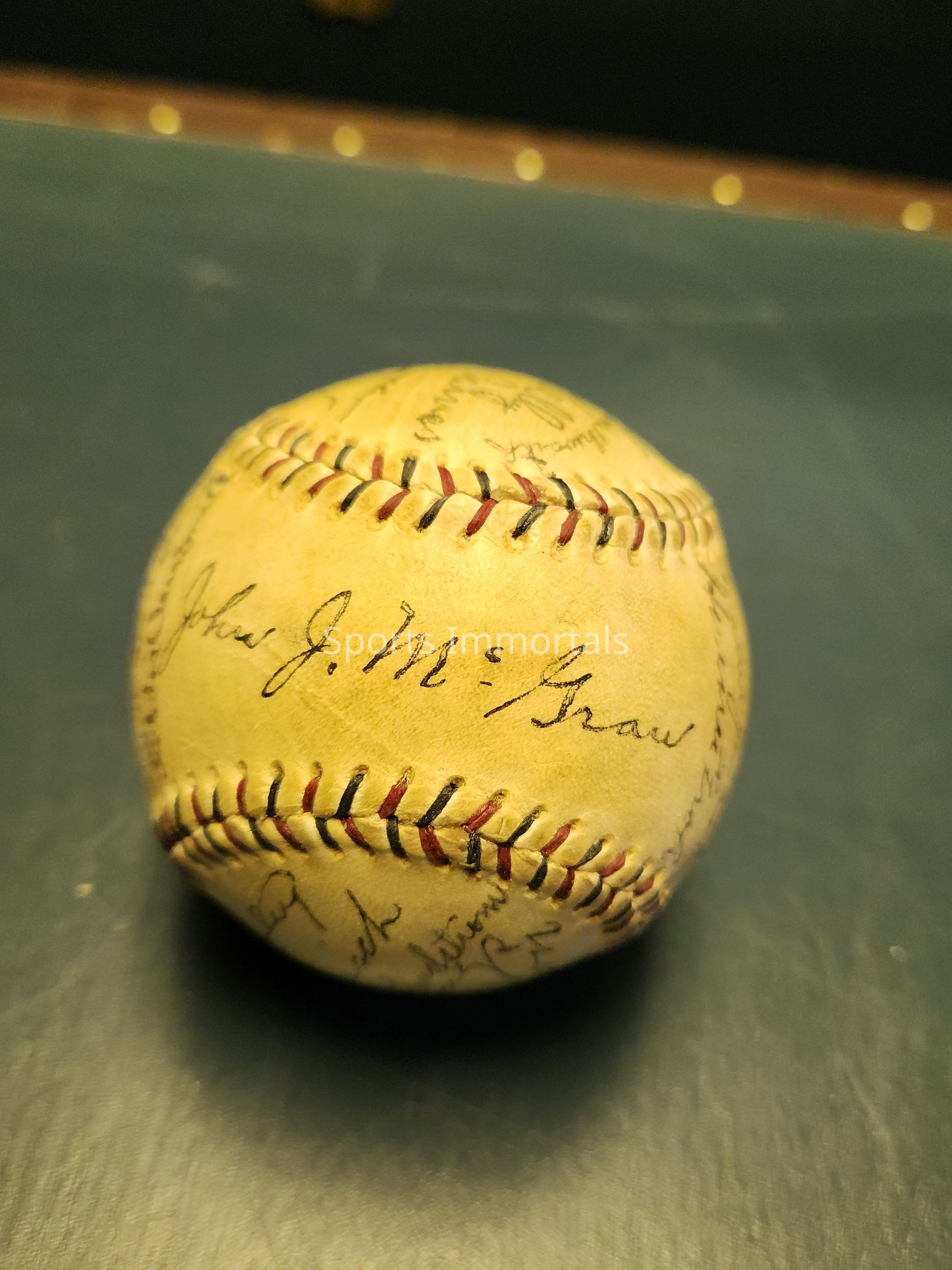 Autographed Team Ball From N.L. Champions Who Lost To Senators In World Series signed by McGraw, Frisch, Terry, Wilson, Lindstrom, Jennings, Southworth, Kelly and many more