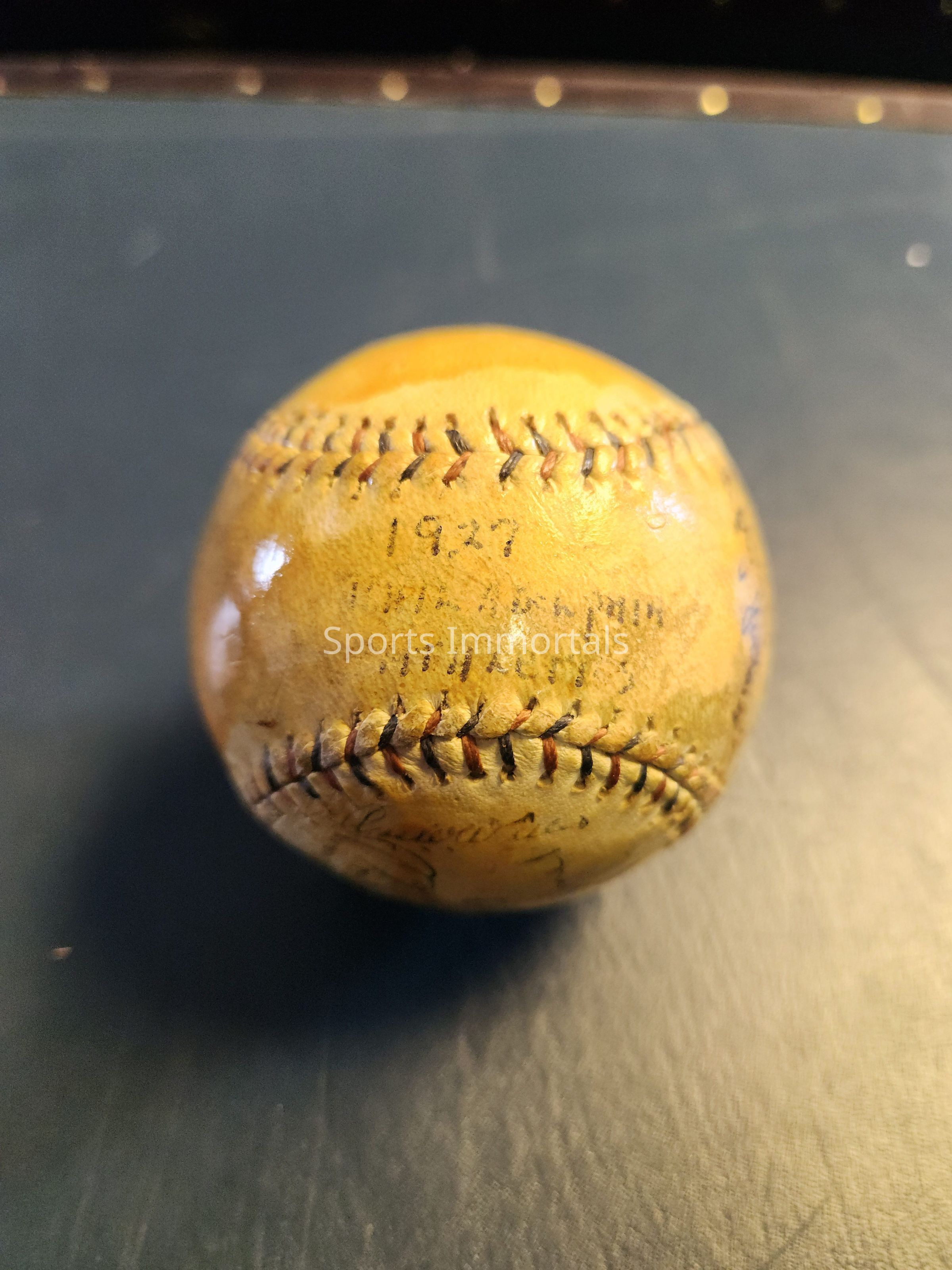 Autographed Baseball signed by 1927 Athletics; Mack, Grove, Cobb, Dykes, Quinn, Wheat, Ehmke, Collins, Simmons and more