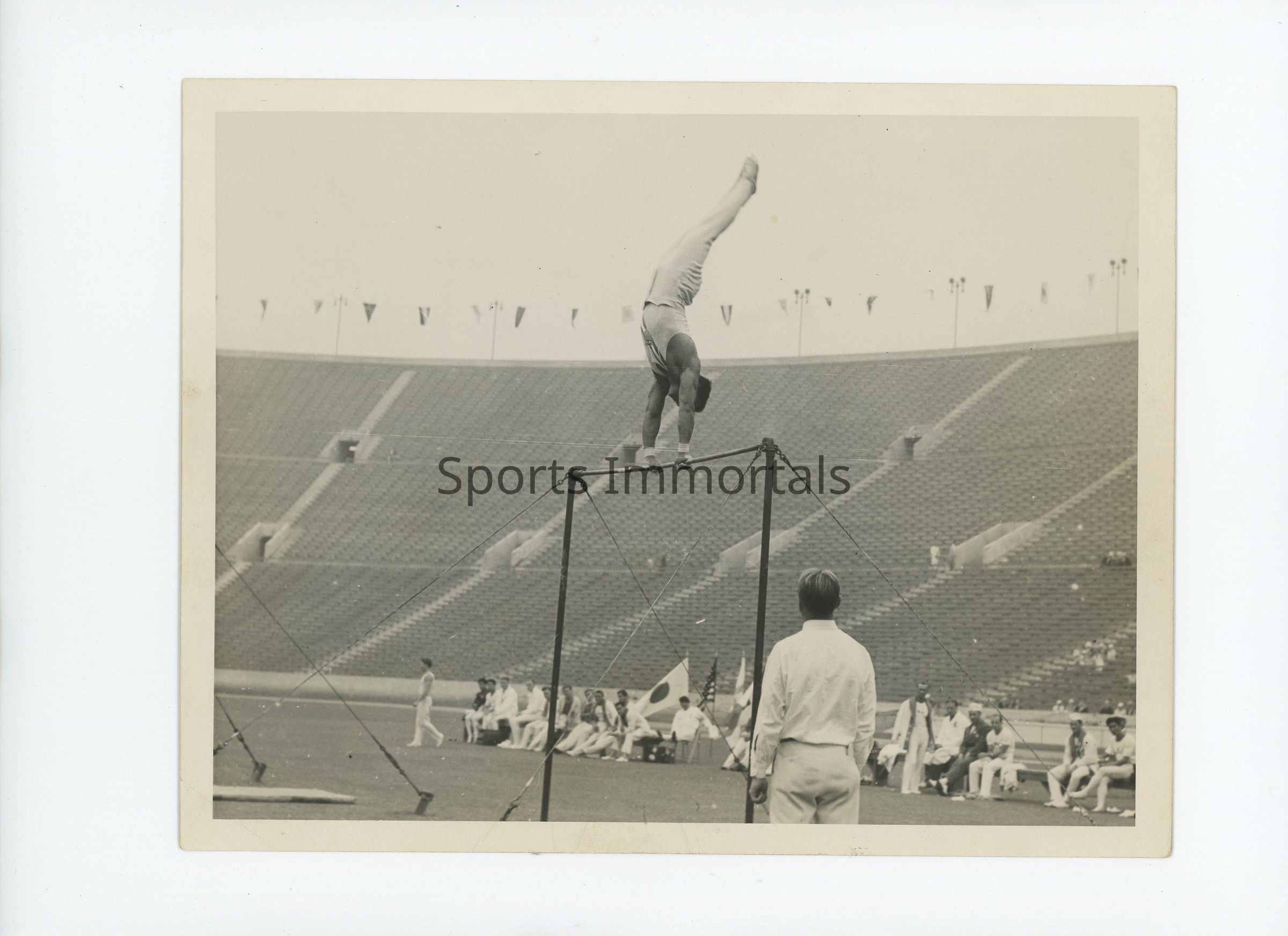 Official Photo Olympic Games 1932 Of A Us Gymnast On The High Bar