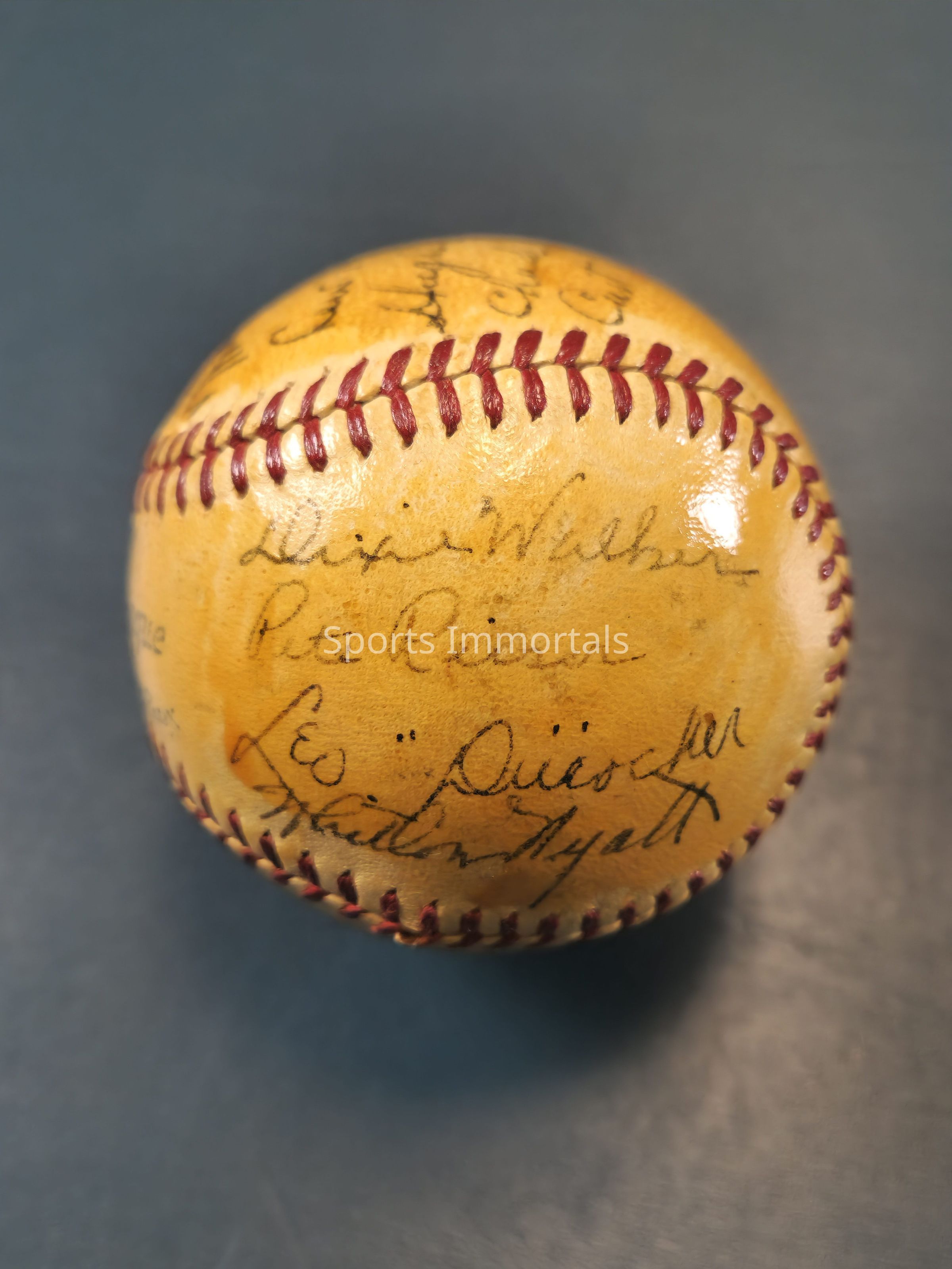 Autographed Team Ball signed by 1941 Brooklyn Dodgers; Reese, Durocher, Camilli, Wyatt, Reiser, Walker, Dressen, Davis and others