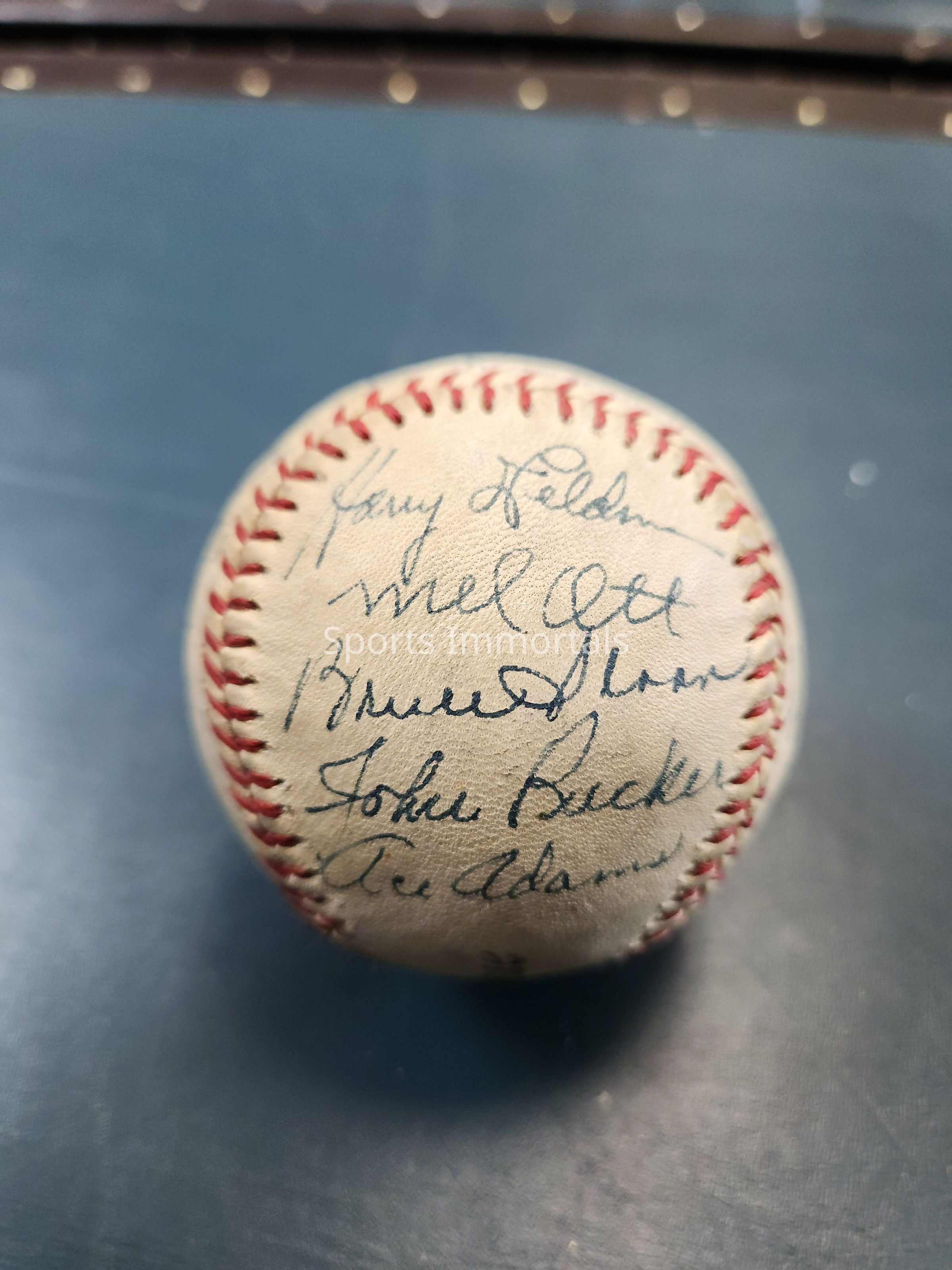 Baseball Signed By Joe Medwick, Gus Mancuso, Mel Ott, Bruce Sloan, John Rucker, Ace Adams, Andy Hansen, D. Gaudella, Frank Seward, ? Pyle, Bob Berthelson, Jack Brewer, Ernie Lombardi, Leo Hausmann, Bill Jurges, Bill Voiselle And Buddy Kerr