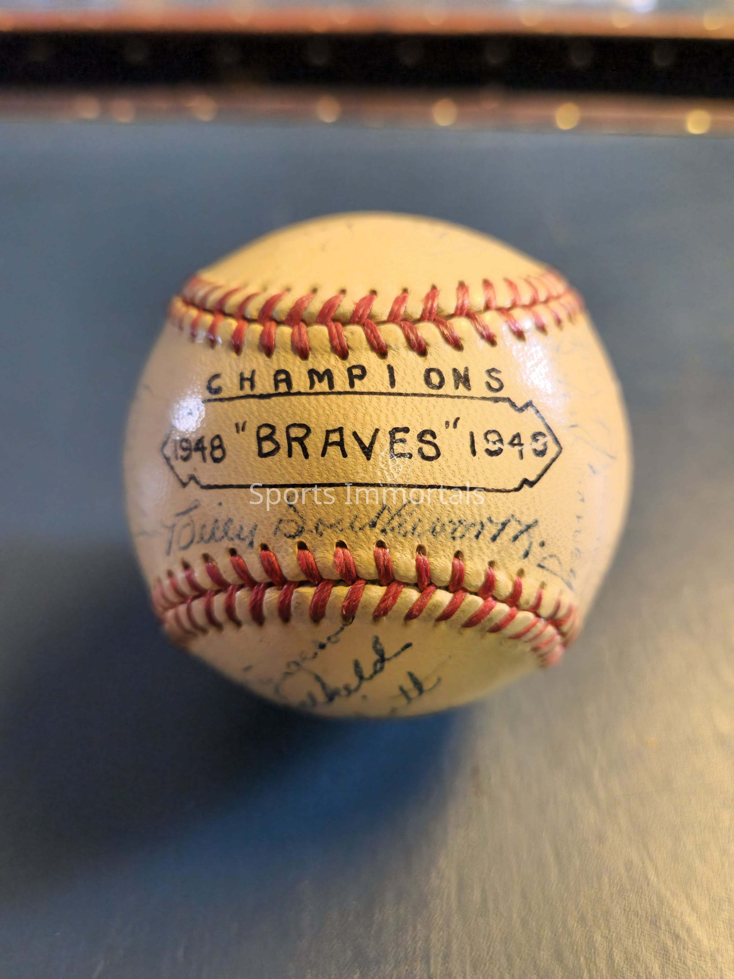 Autographed Baseball from Champions 1948 Boston Braves; Billy Southworth, McCormick, Spahn, Elliott, Ryan, Sain, Dark, Antonelli and more