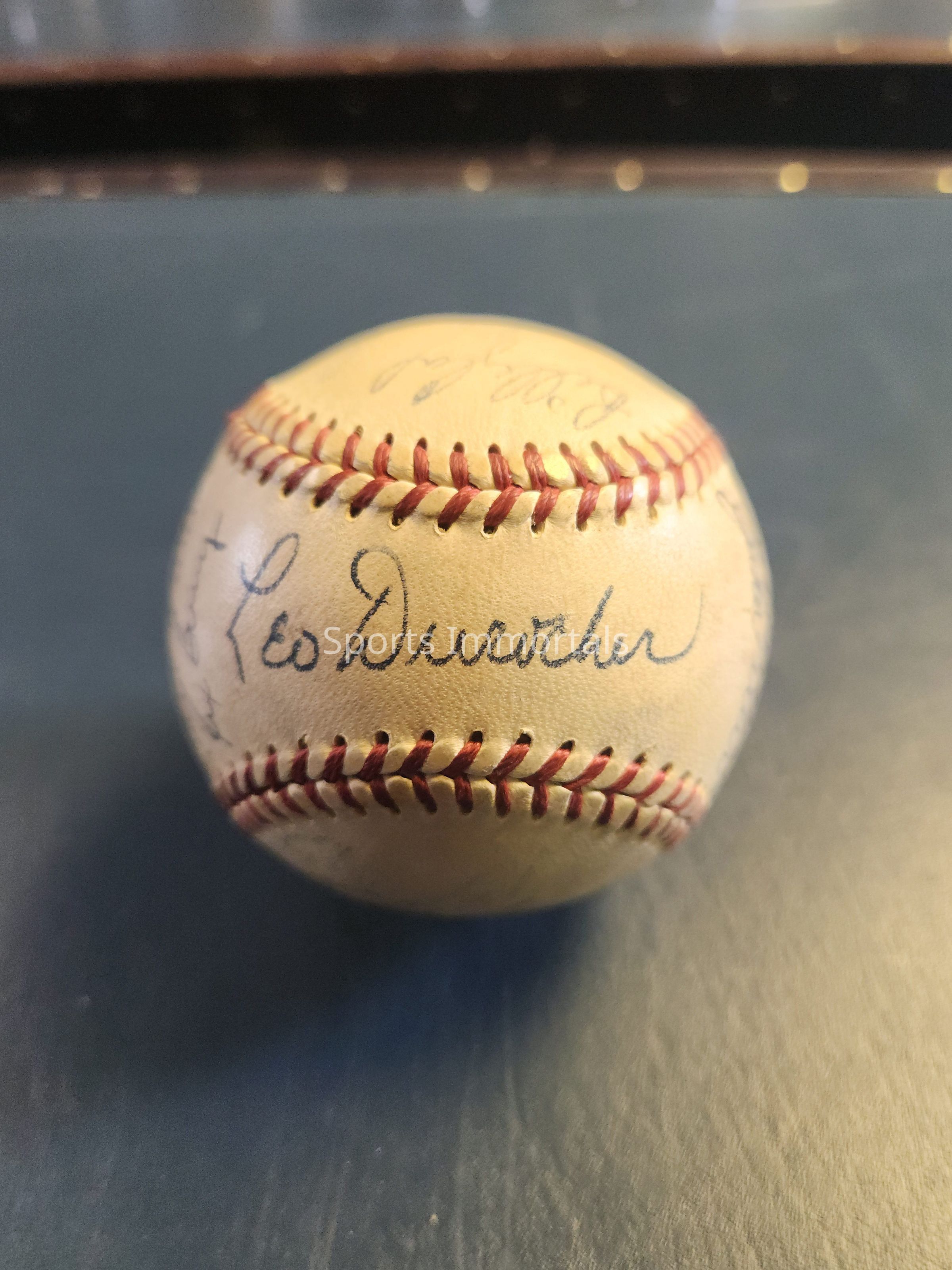 Baseball Signed By 1948 Dodgers; Leo Durocher, Jackie Robinson, Gene Mauch, Hugh Casey, Arky Vaughan, Gil Hodges, Pee Wee Reese, Willie Ramsdell, Ralph Branca, Marv Rackley, Carl Furillo, Rex Barney, Harry Taylor, Tom Brown, Don Lund, Clyde King, Dick Whitman and more