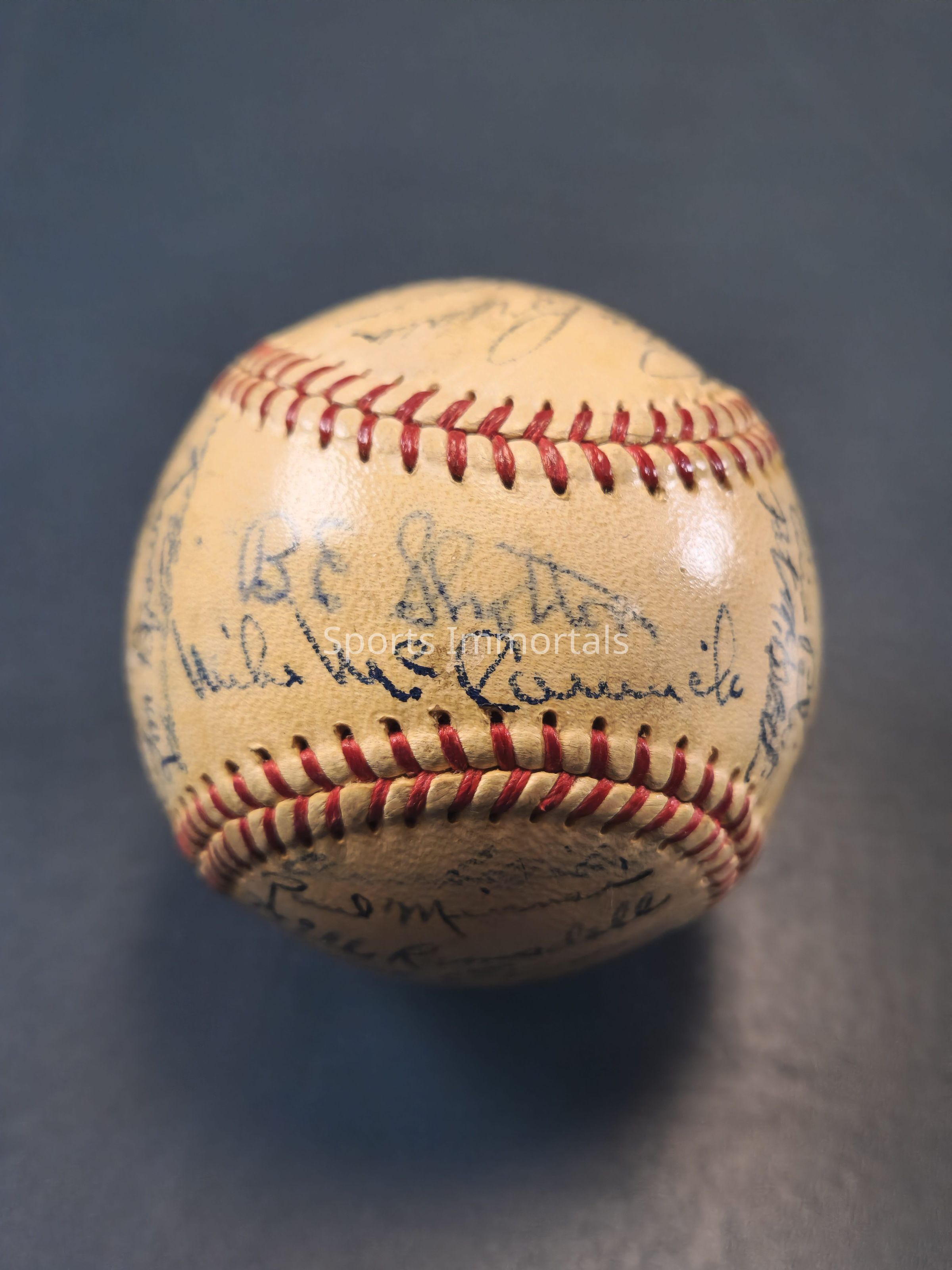 Autographed Baseballs signed by 1949 Brooklyn Dodgers; Robinson, Campanella, Shotton, McCormick, Hodges, Banta, Connors, Cox, Shuba, Palica, Barney, Jorgensen, Snider, Hatten, Abrams, Erskine, Branca, Hermanski, Chandler, Van Cuyk, Whitman, Brown, Reese, Martin and more
