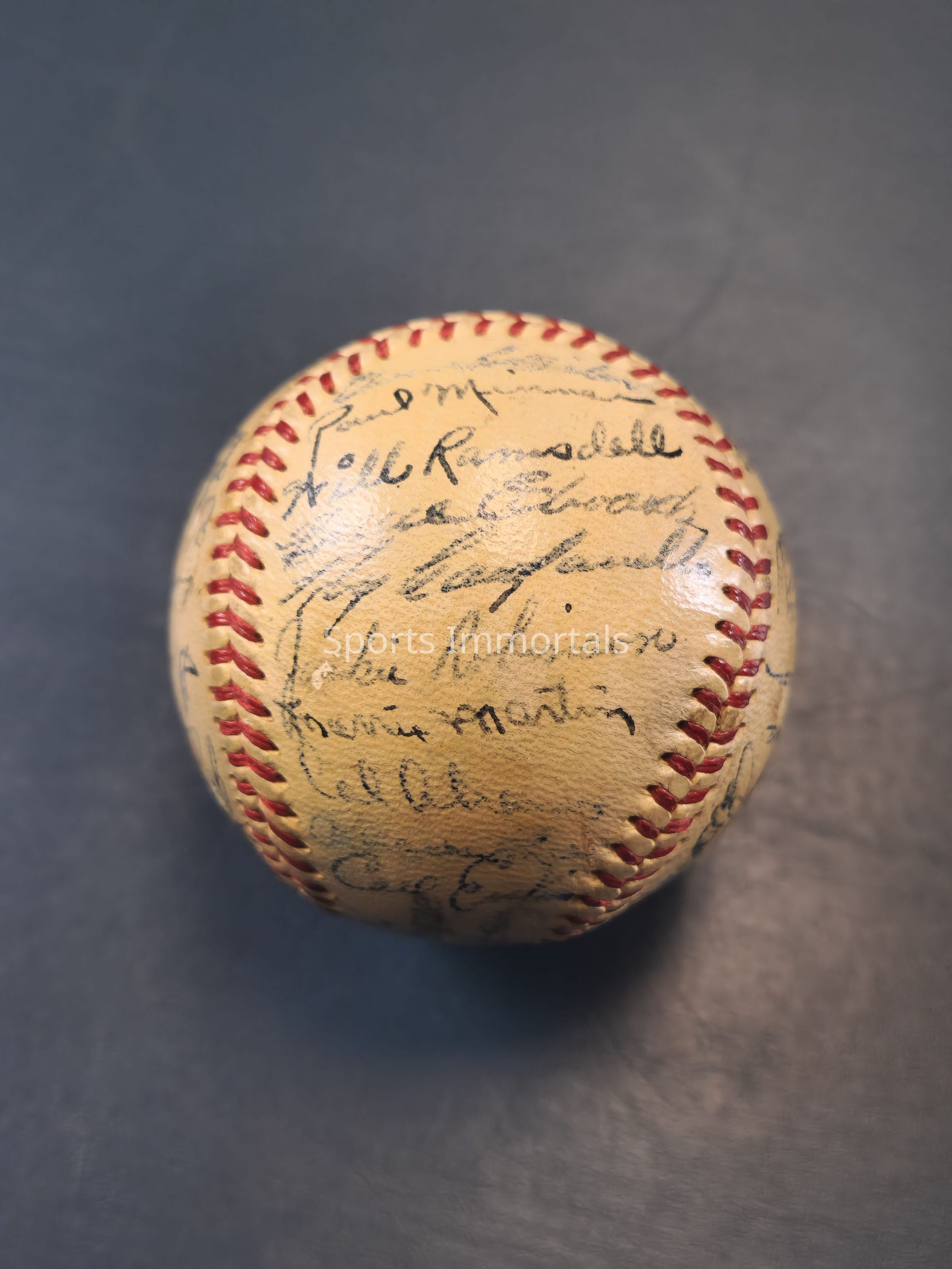 Autographed Baseball signed by 1949 Dodgers; Jackie Robinson, Roy Campanella, Reese, Branca, Roe and others