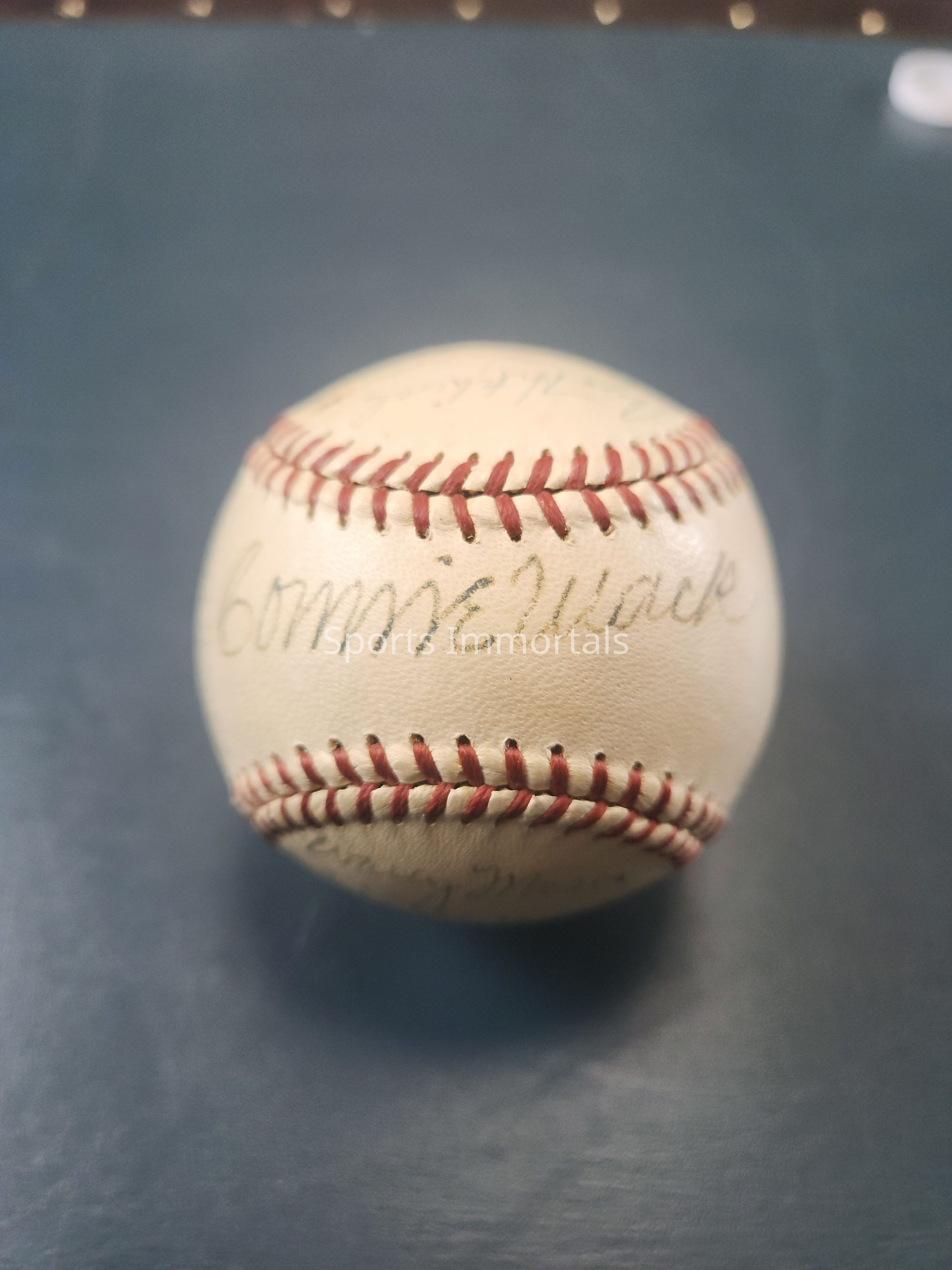 Autographed Baseball signed by 1951 Athletics; Connie Mack, Jimmy Dykes, Fain, Hitchcock, Brissie, Moses, Miller, Wahl, Chapman, Coleman, Astroth, Murry, Kucab, Lehner, Scheib, Suder, Shantz, McCosky and more