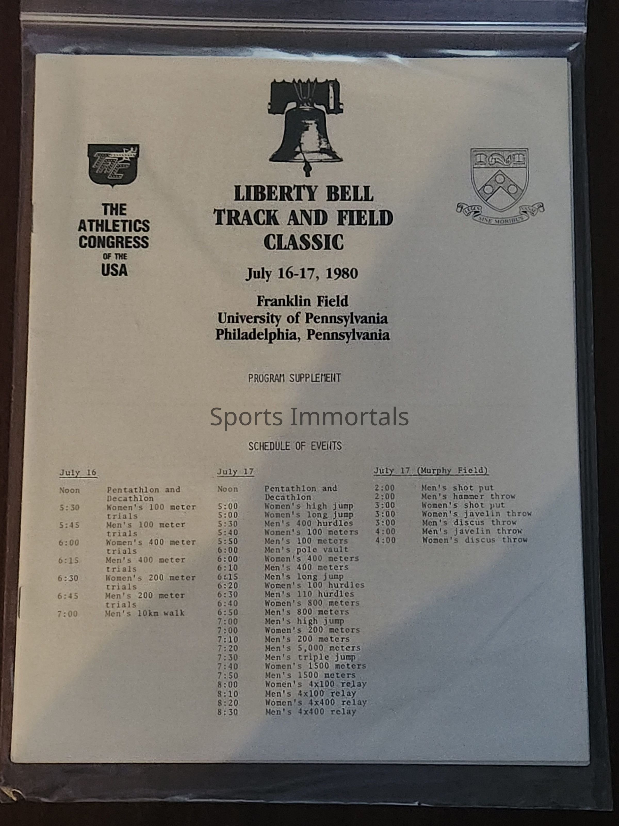 1980 Liberty Bell Track and Field Classic Program