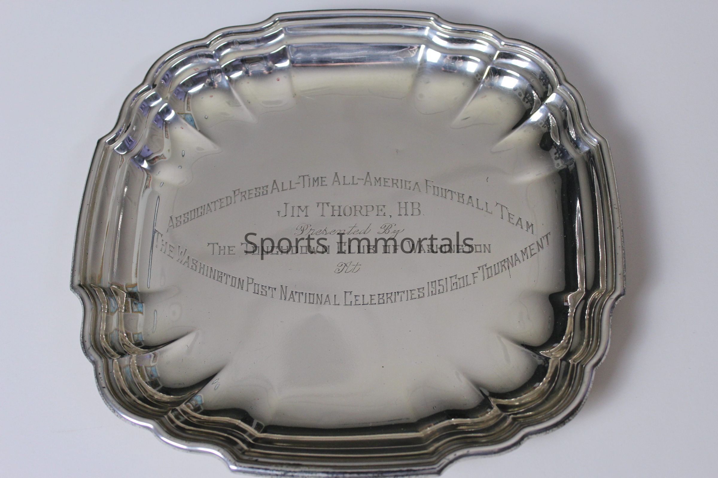Silver Plate presented to Jim Thorpe for being a member of Associated Press's All Time All American team presented by touchdown club of Washington