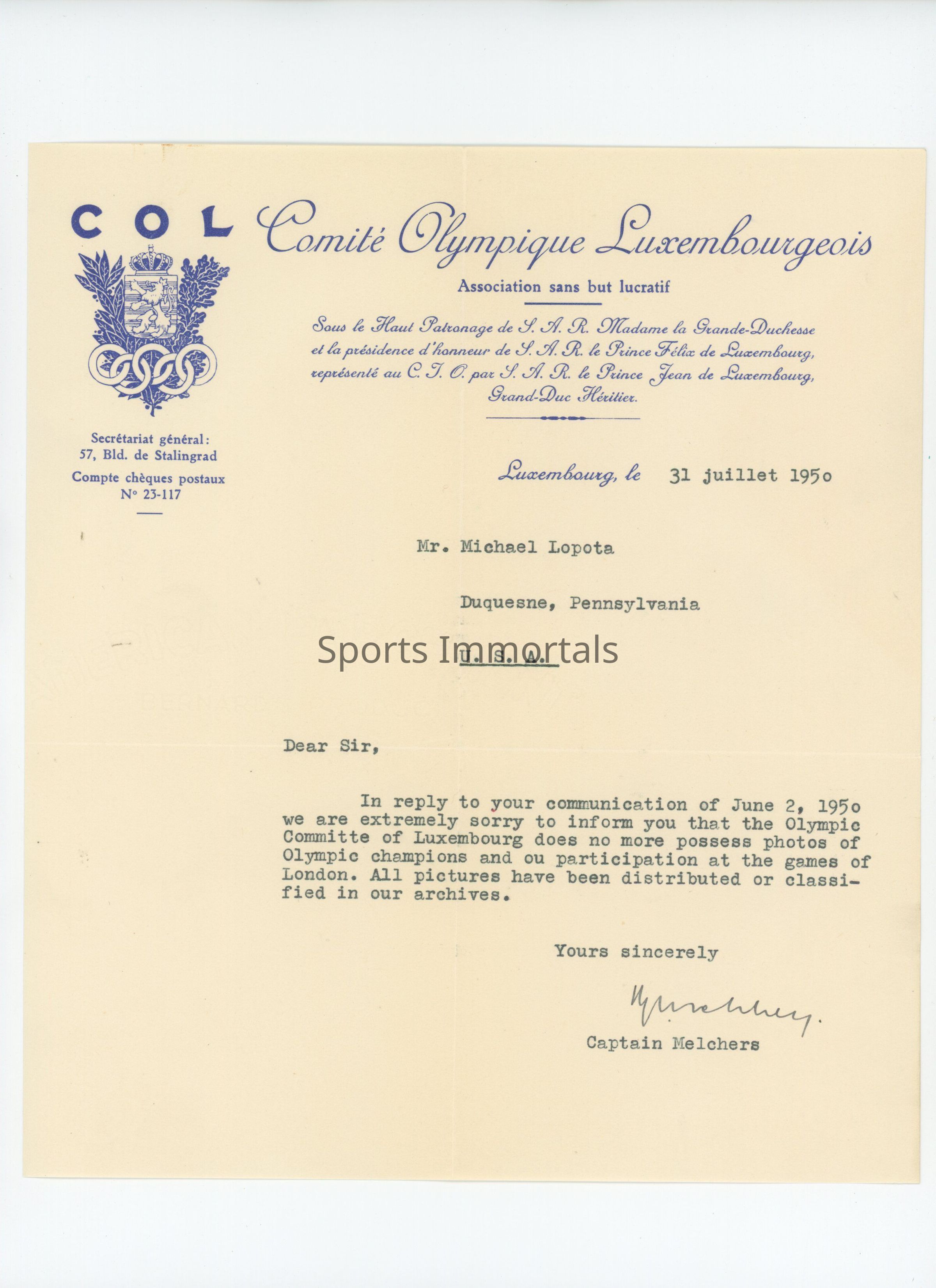 Letter to Lopota from the Olympic Committee of Luxembourg