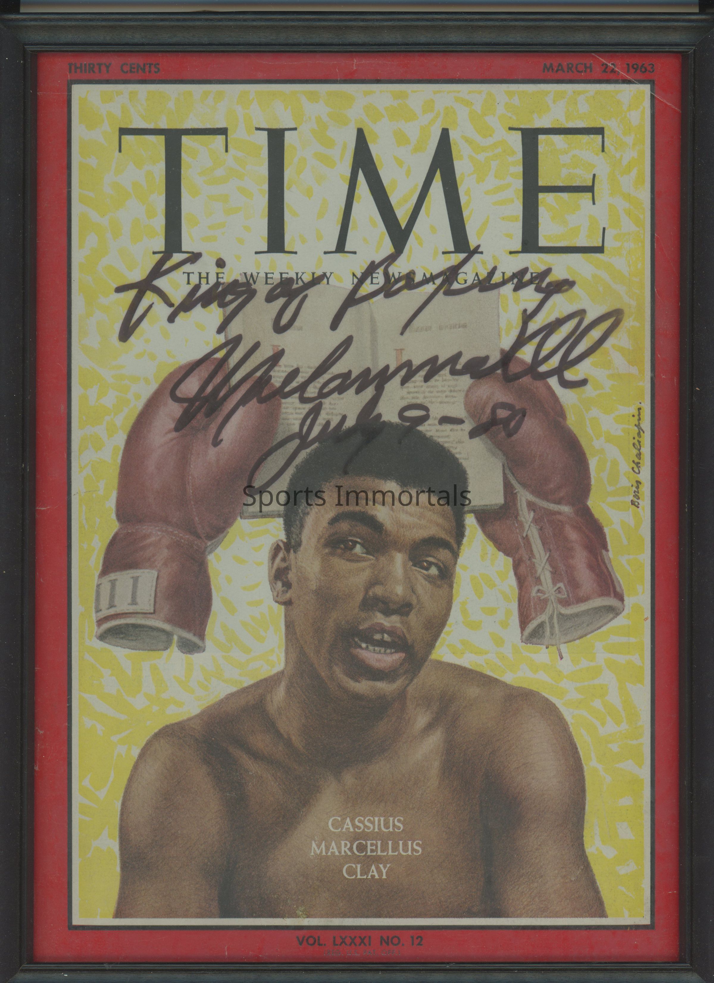 March 22, 1963 Time magazine signed by Ali with inscription "King of Boxing July 9-80"