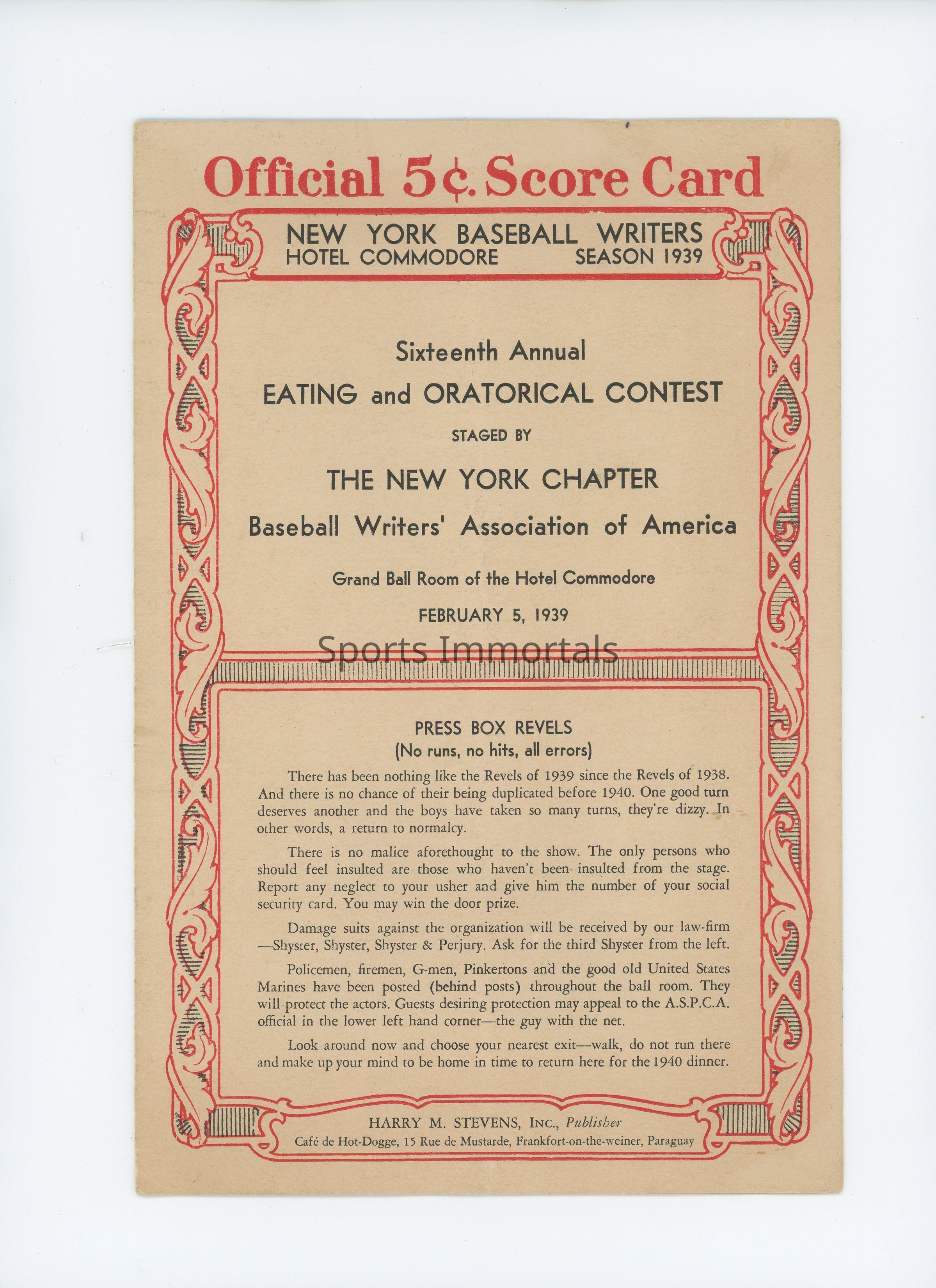 1939 Baseball Writers Of New York Banquet Program Autographed By Babe Ruth And Mickey Cochrane