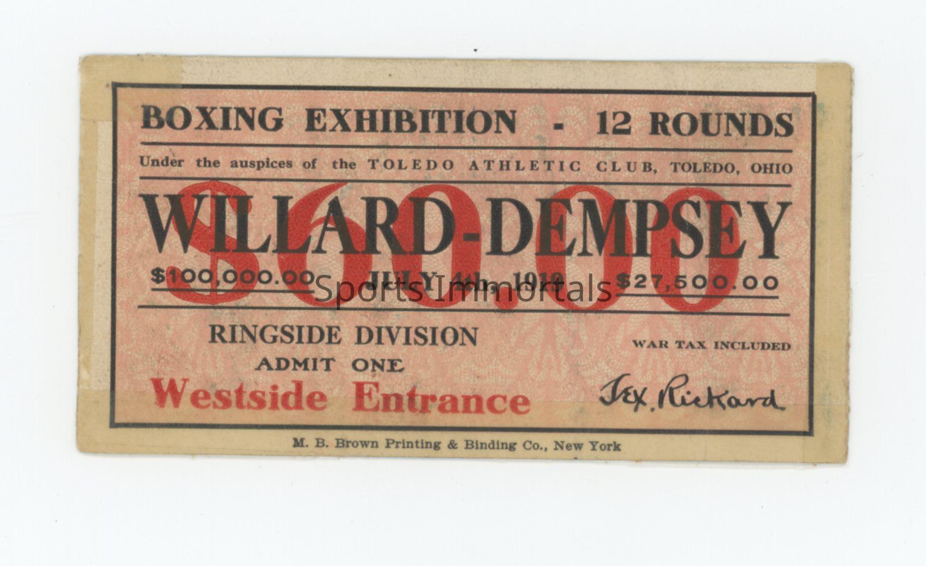 Jess Willard vs. Jack Dempsey Ticket Stub