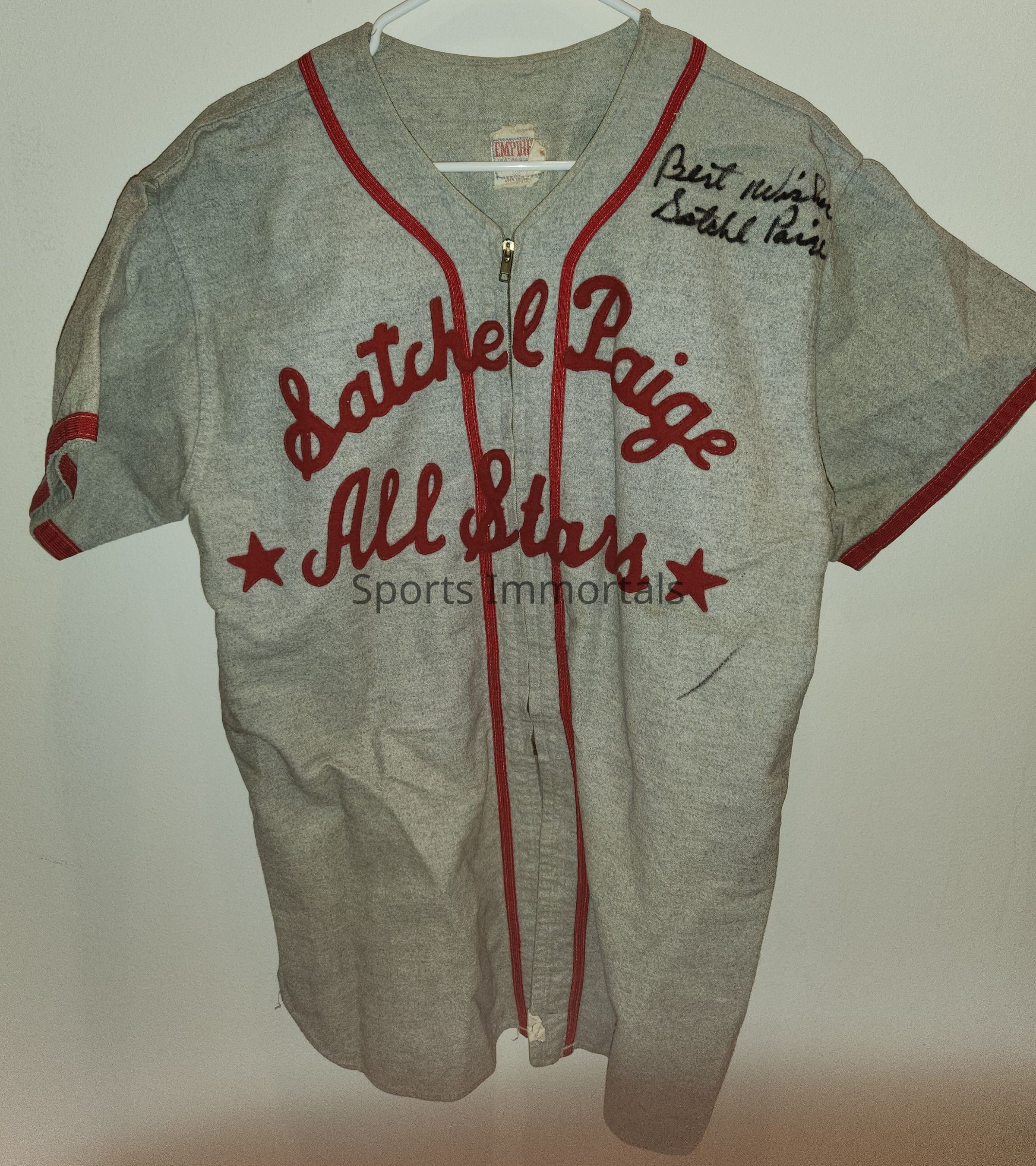 Autographed game worn traveling All Stars jersey and pants. Both are signed "Best Wishes." There is a picture with Joel and Satchel signed by Satchel. There are also photos of Paige wearing this uniform.