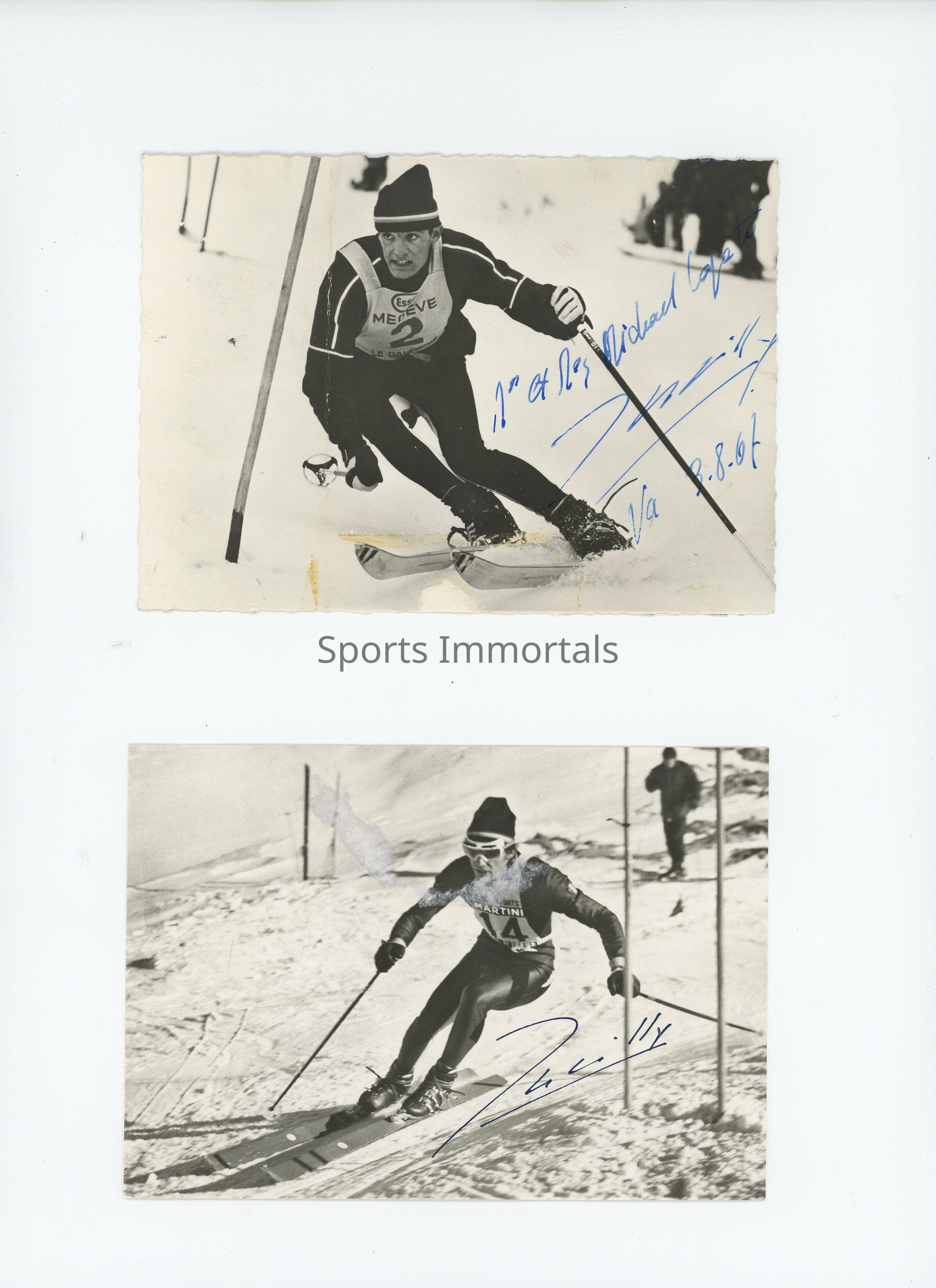2 Autographed Post Card Of Skier Who Won 3 Gold Medals In Grenoble In 1968