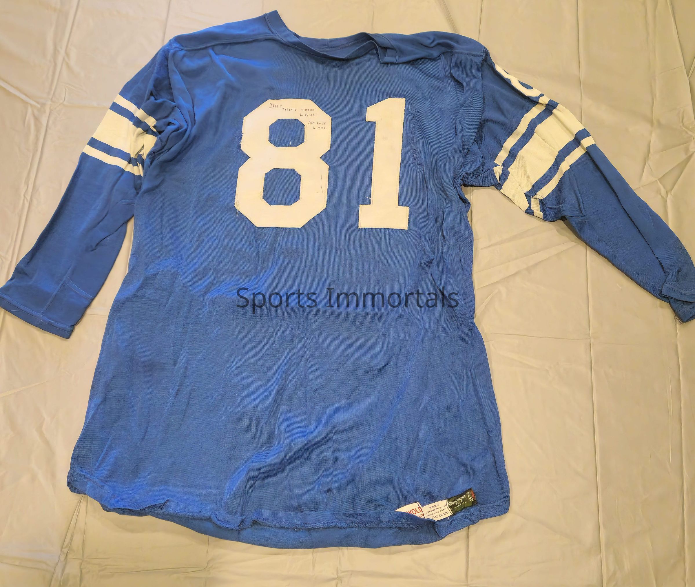 Game Worn Jersey. Received From Friday Macklem, Equipment Manager Of Lions. Very Rare. Might Be Only One