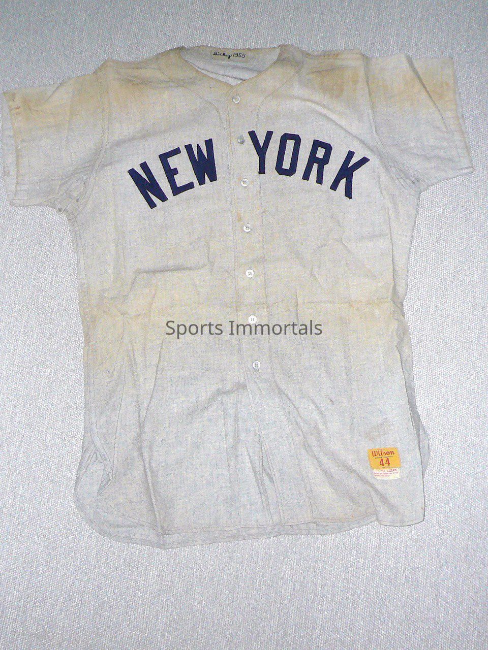 1955 Wilson Size (44) Grey Coaching Game Worn Jersey With Stains. World Series Season