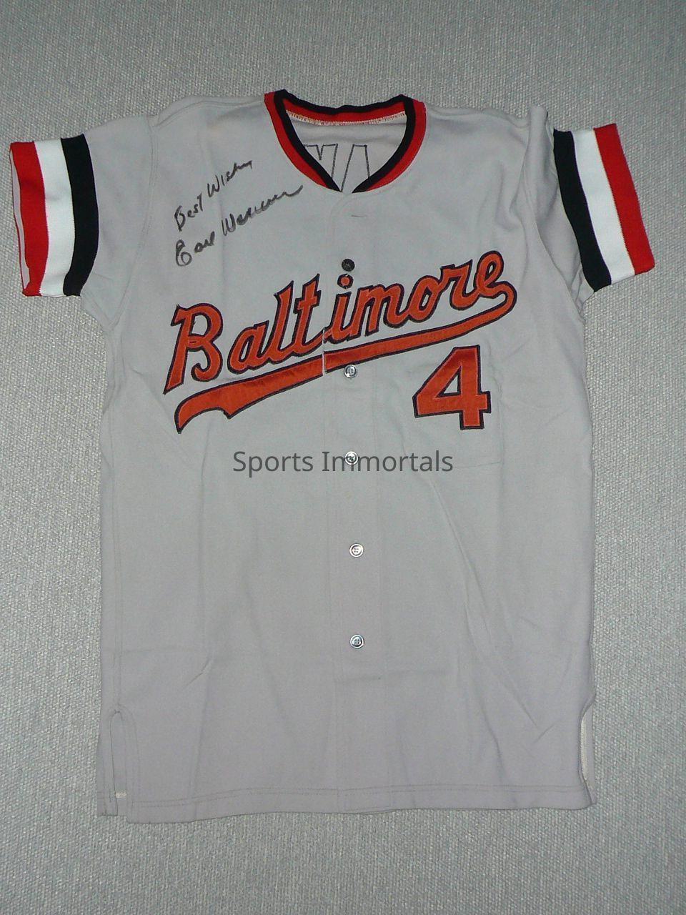 1972 Spalding Grey Button Down Game Worn Jersey. #4. Signed Best Wishes Earl Weaver