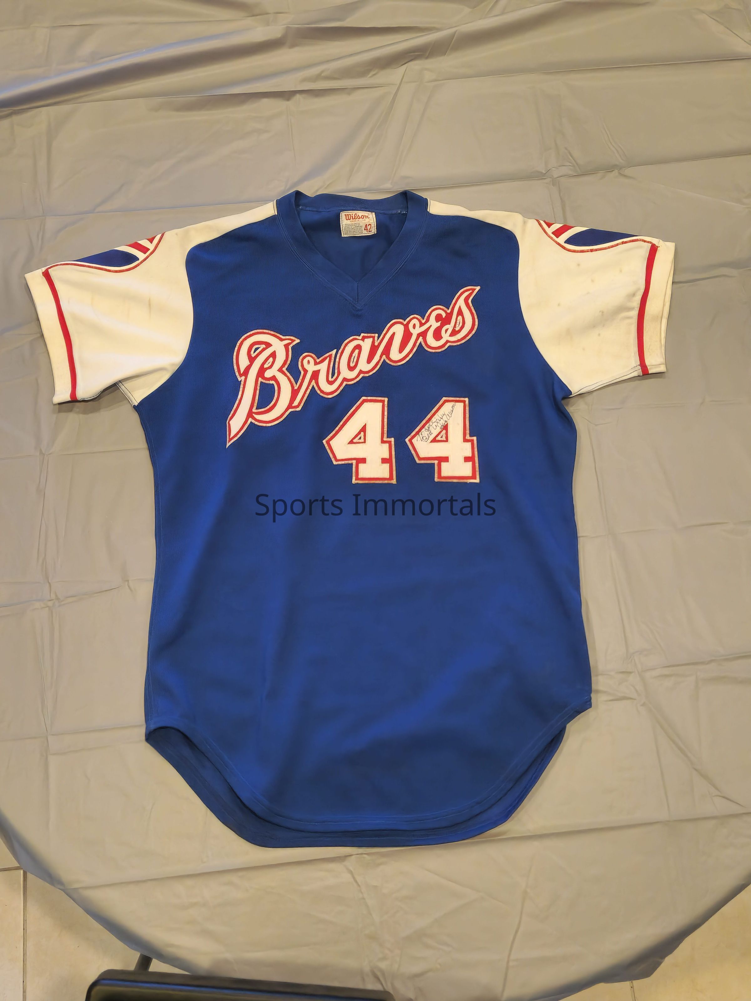 Hank Aaron Autographed Game Uniform Blue/White