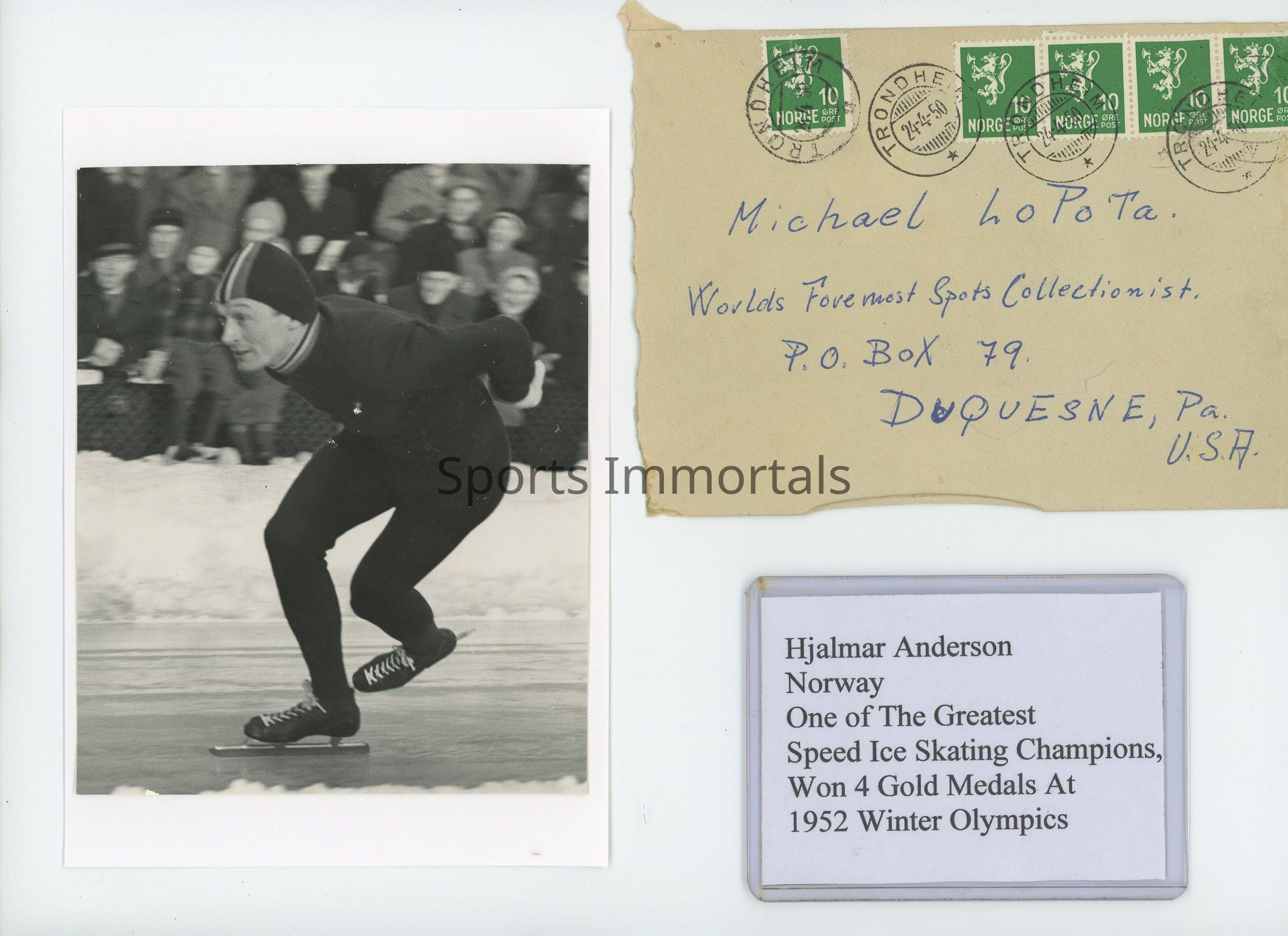 2 photos of great Norwegian speed skater who won 4 Gold medals at the 1952 Winter Olympics