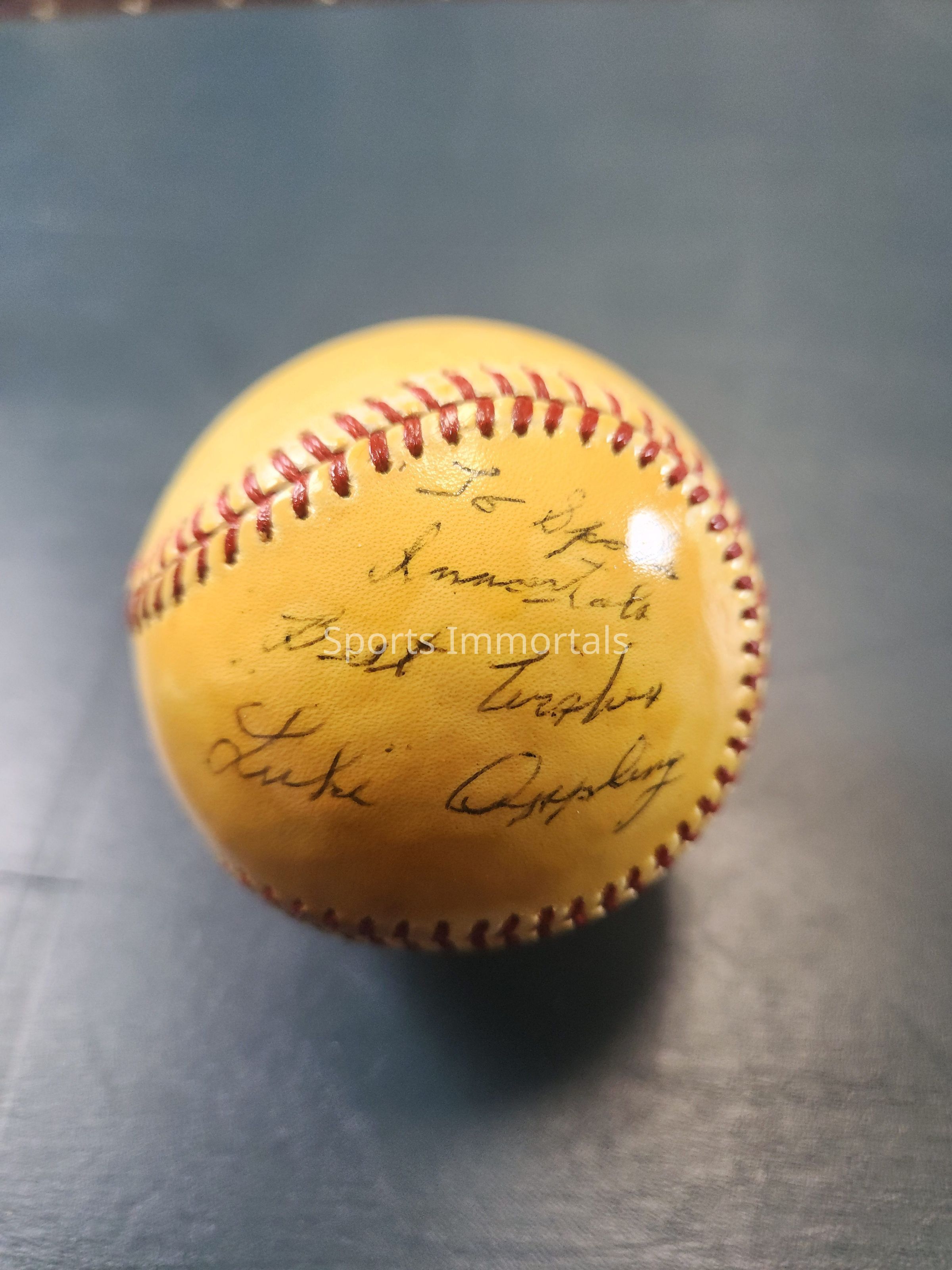 Autographed Baseball signed "To Sports Immortals Best Wishes"