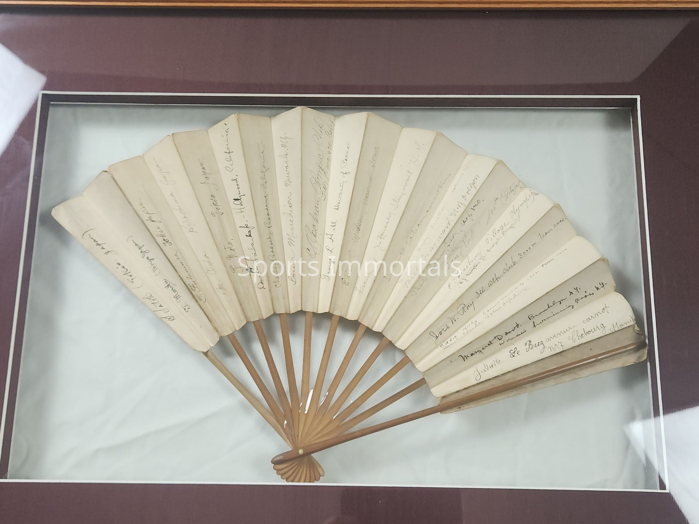 Autographed framed Fan from 1924 Olympics in Paris, France signed by 52 athletesDescription