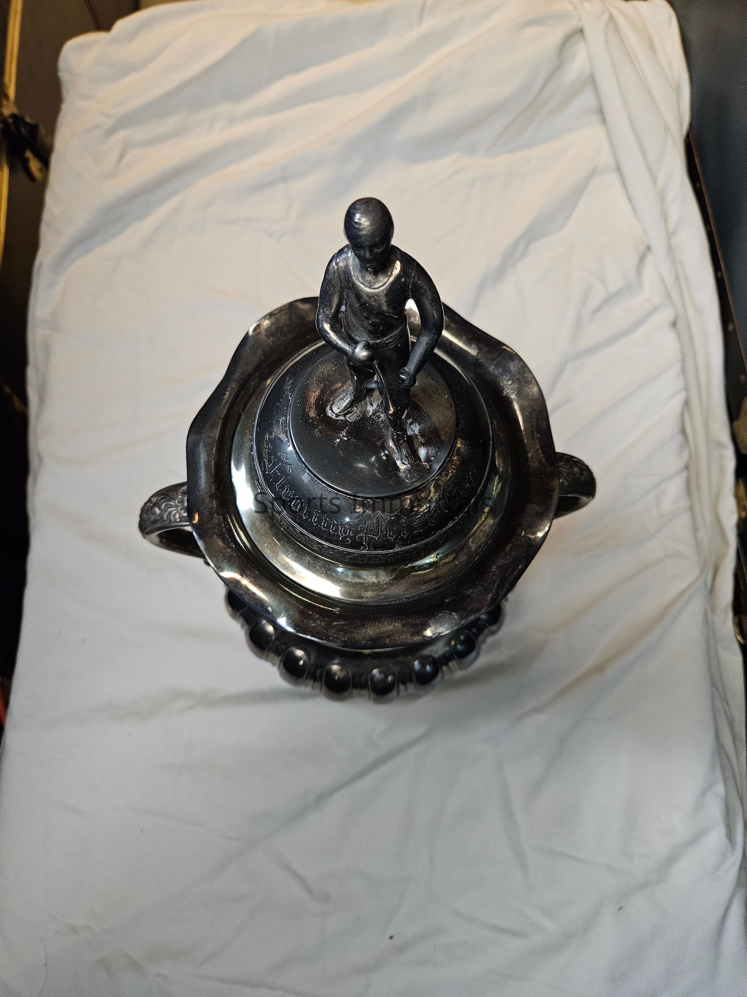 Silver Trophy From Turn Of The Century Era With The Words "Fleming Prize Cup" On It