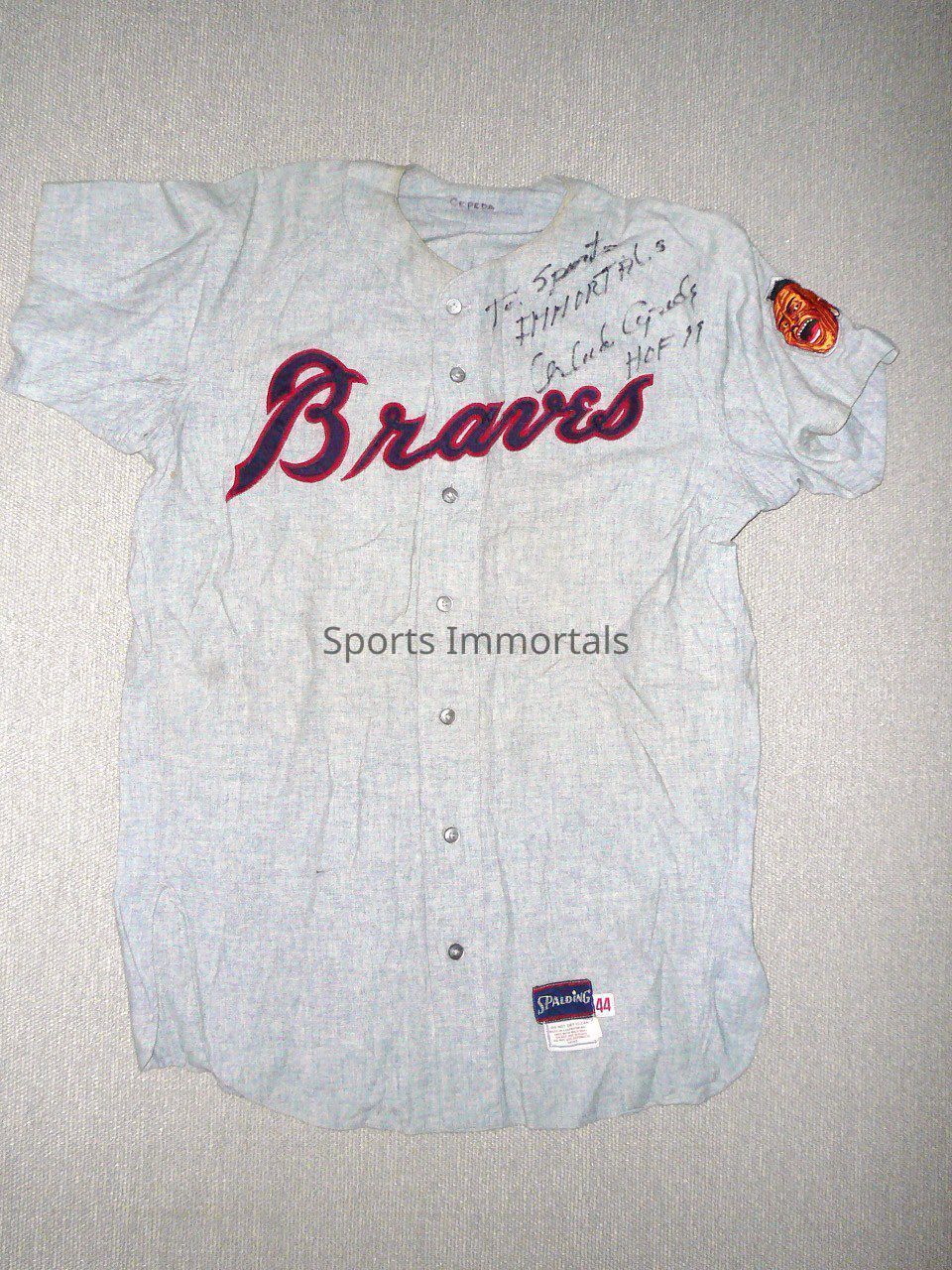 Spalding (44) Grey Game Worn Jersey #30. Set 1. Good Use. Button Down. Has "Do Not Dry Clean Tag." Signed "To Sports Immortals, OC Hof 93" Also 2 Cards.