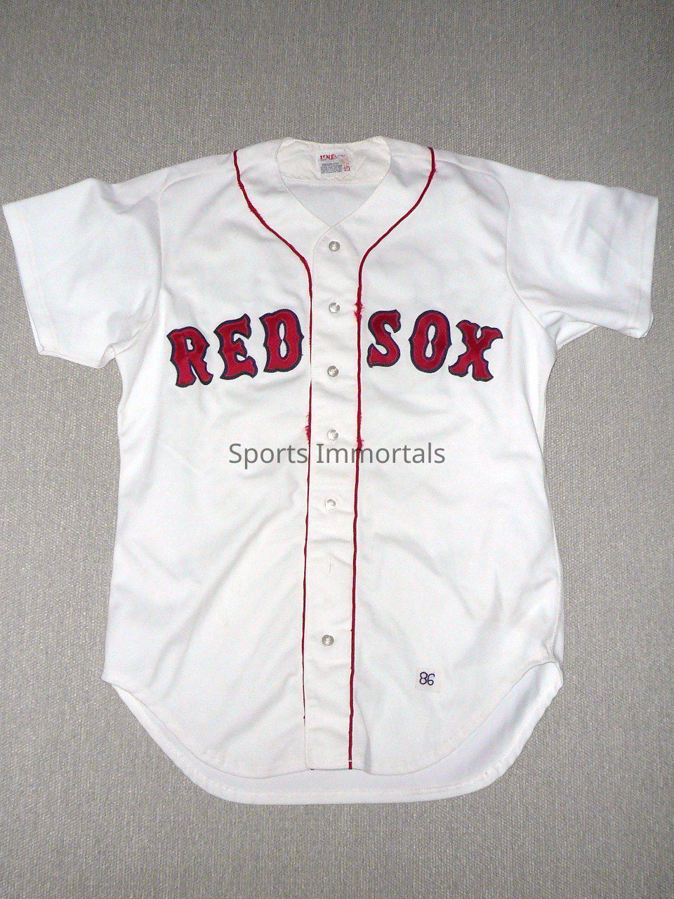 1986 Wilson (46) White Game Worn Jersey With Good Use From Year Red Sox Lost In World Series. Button Down. #21