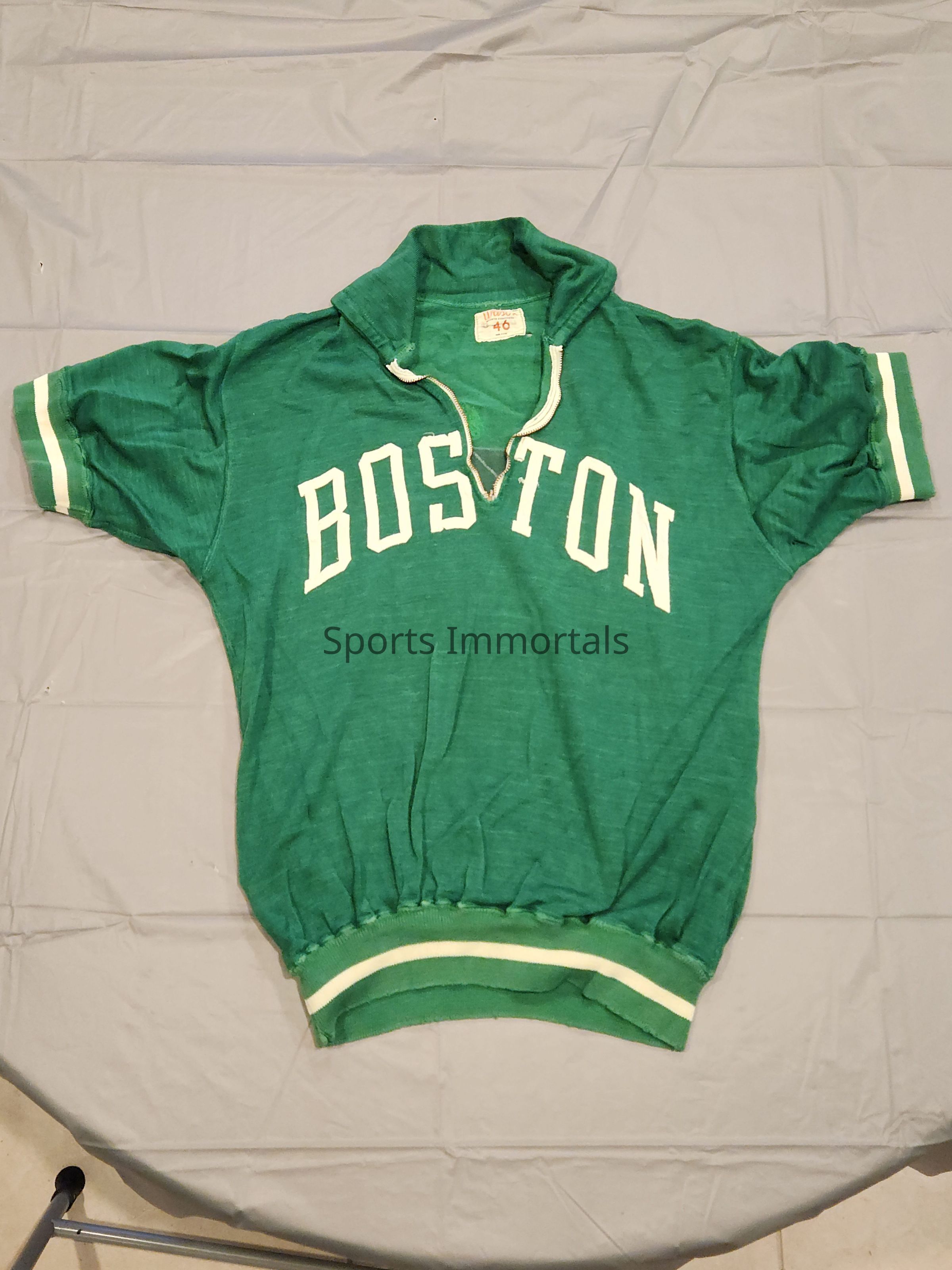 Shooting Jersey worn by Cousy. The jersey did belong to another player prior to Cousy coming to Celtics.