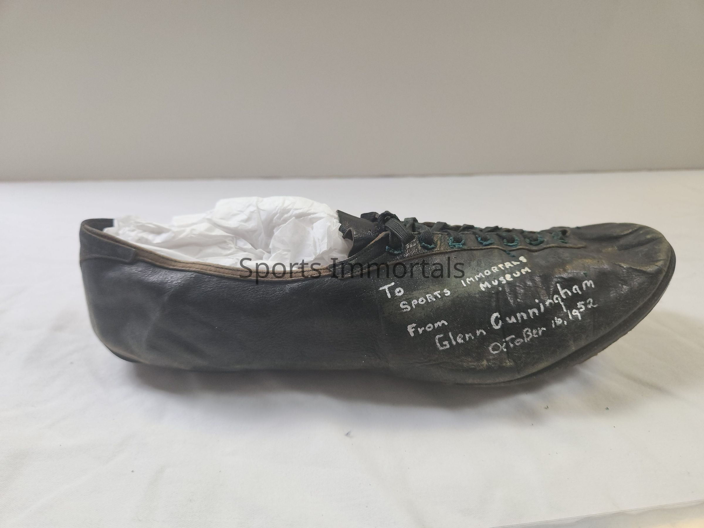Shoe From Silver Medalist In The Mile At 1936 Games. Held Record For Mile. Won Sullivan Award In 1933. Shoe was worn in 1952